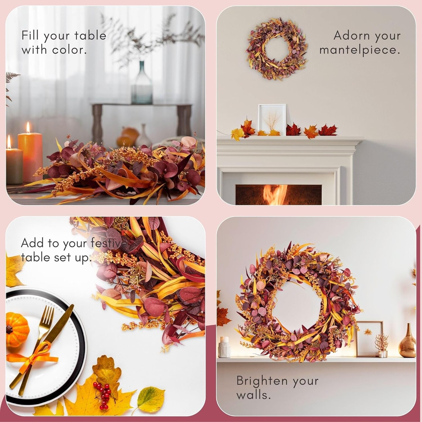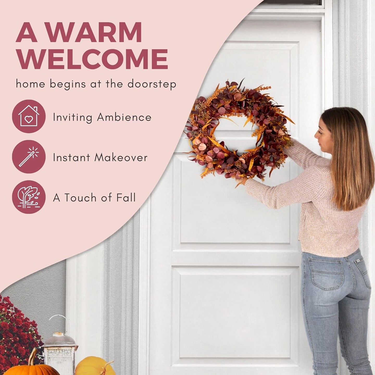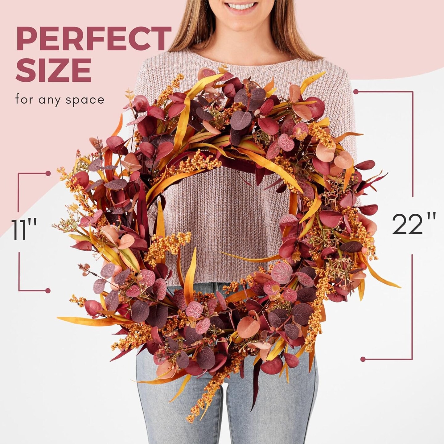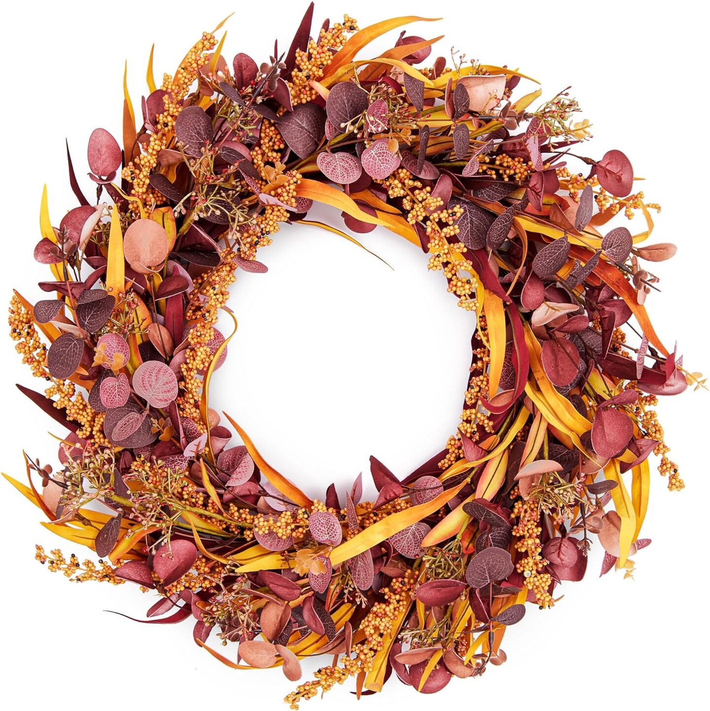 Fall Wreaths for Front Door with Berries Mix Leaves,