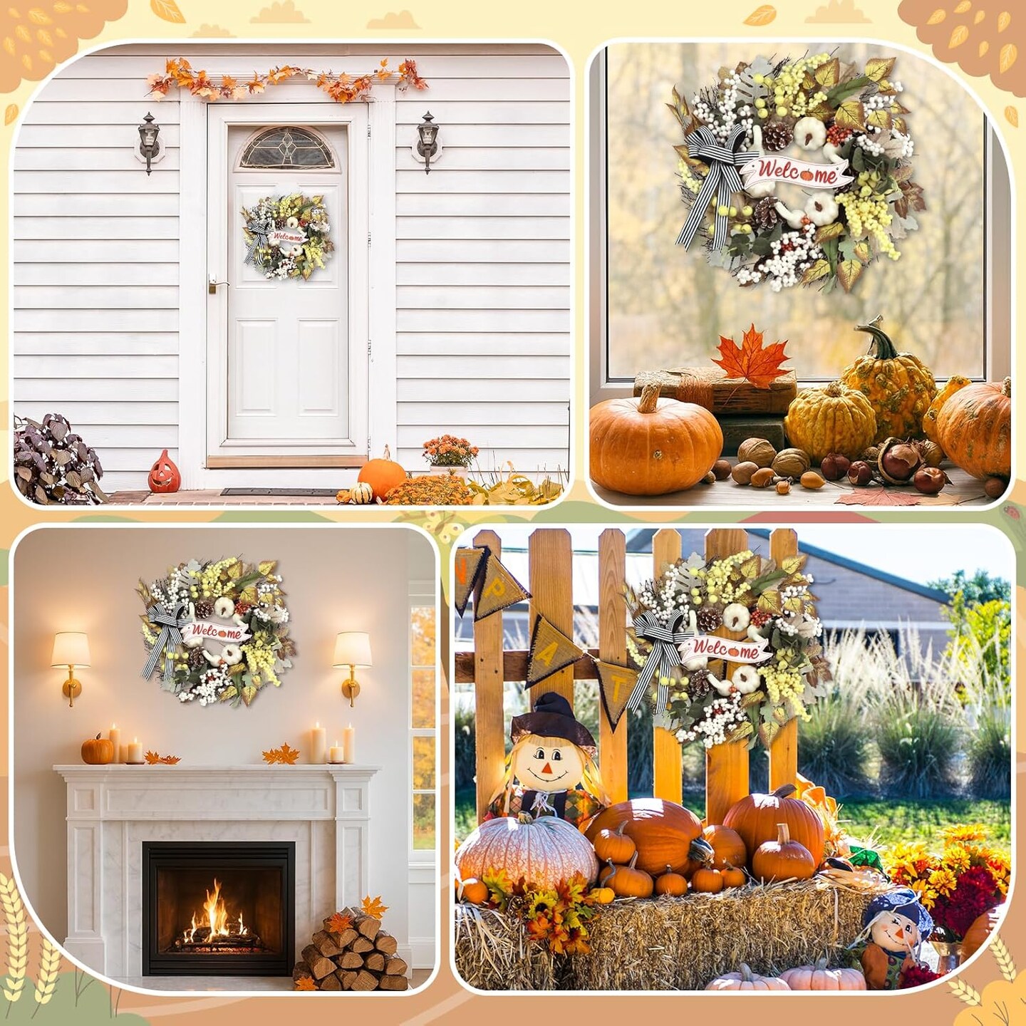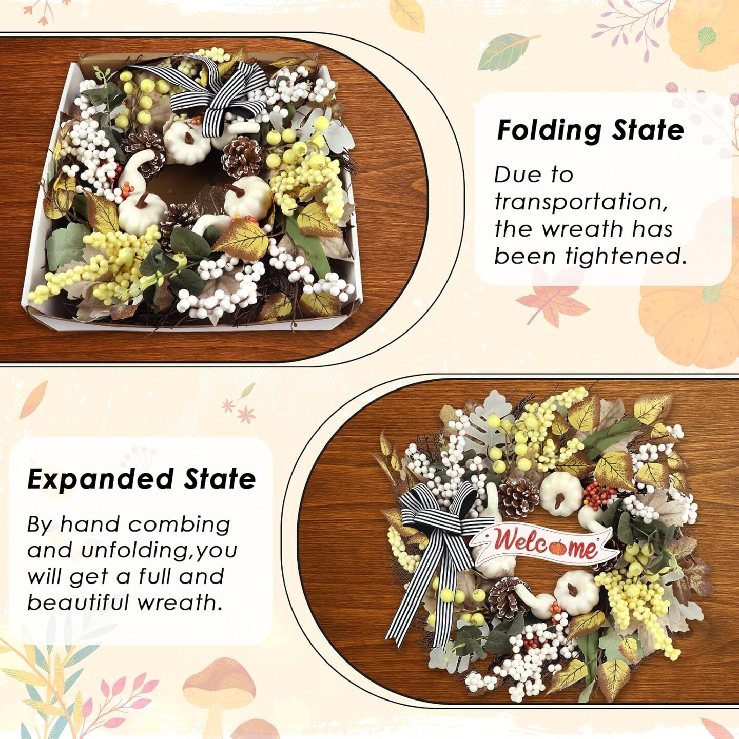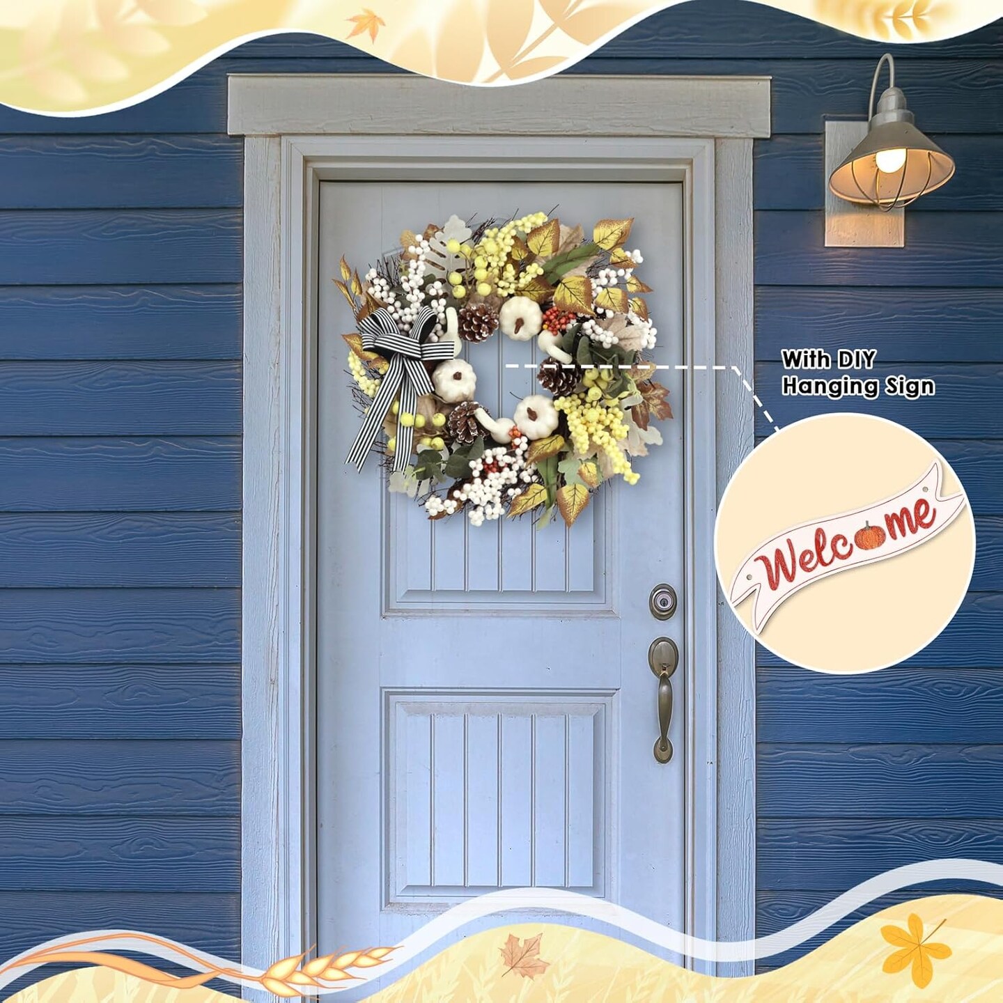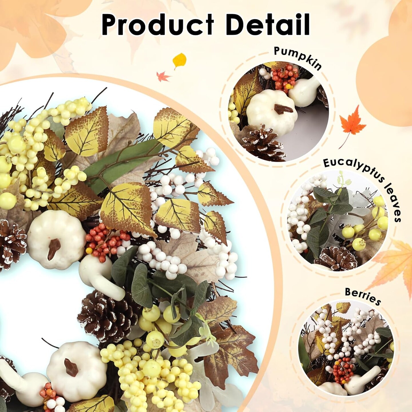 Fall Wreaths for Front Door(Wreath Pumpkin)5"D x 22"W x 22"H
