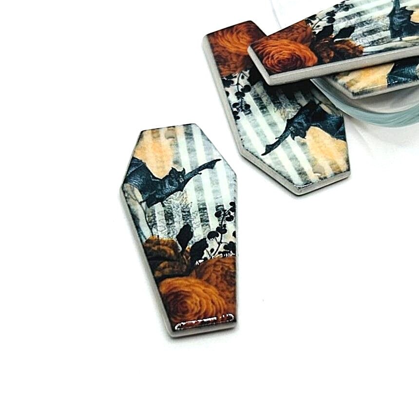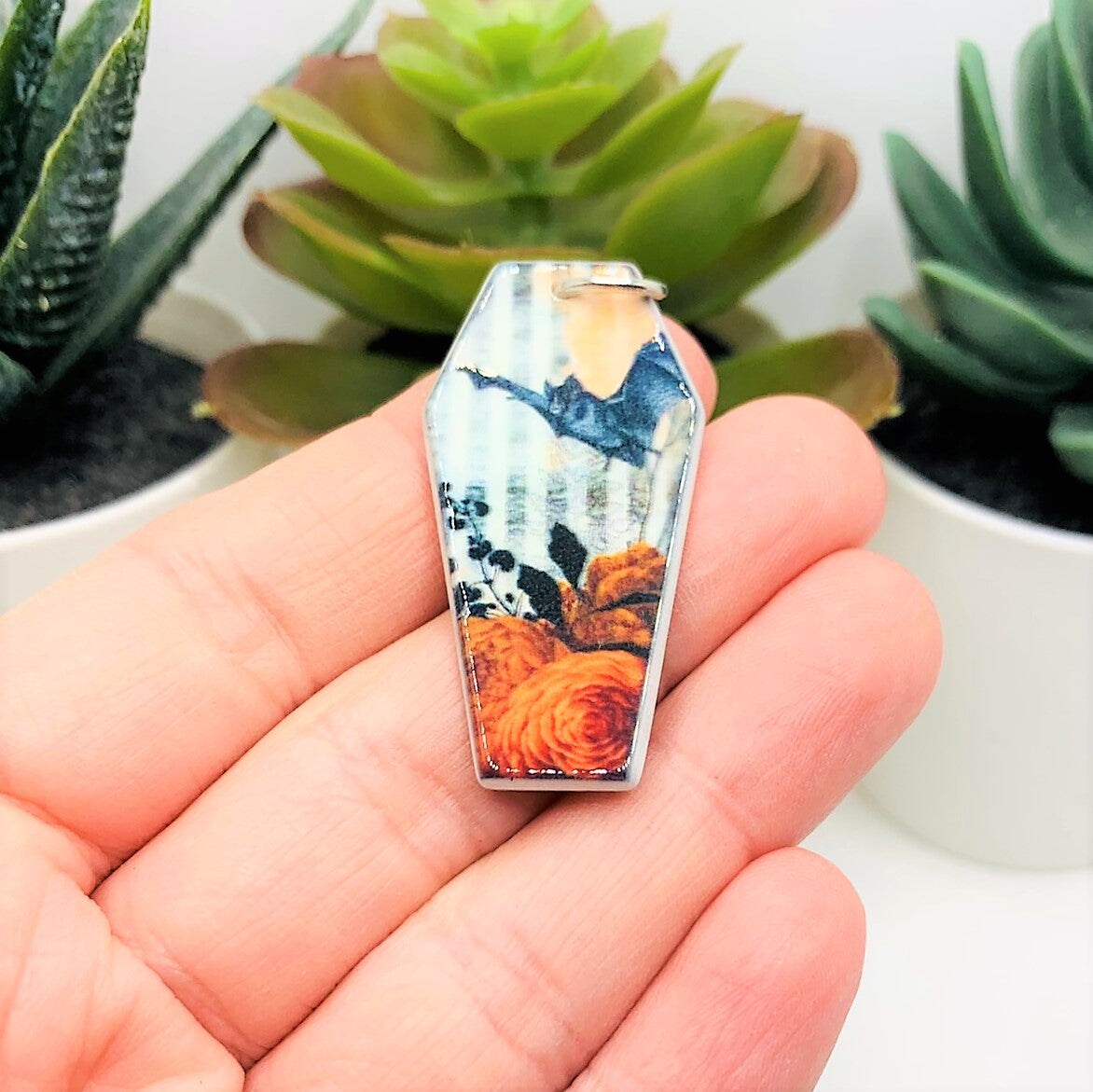 Fall/Autumn Coffin with Bat Charms, 41x21mm