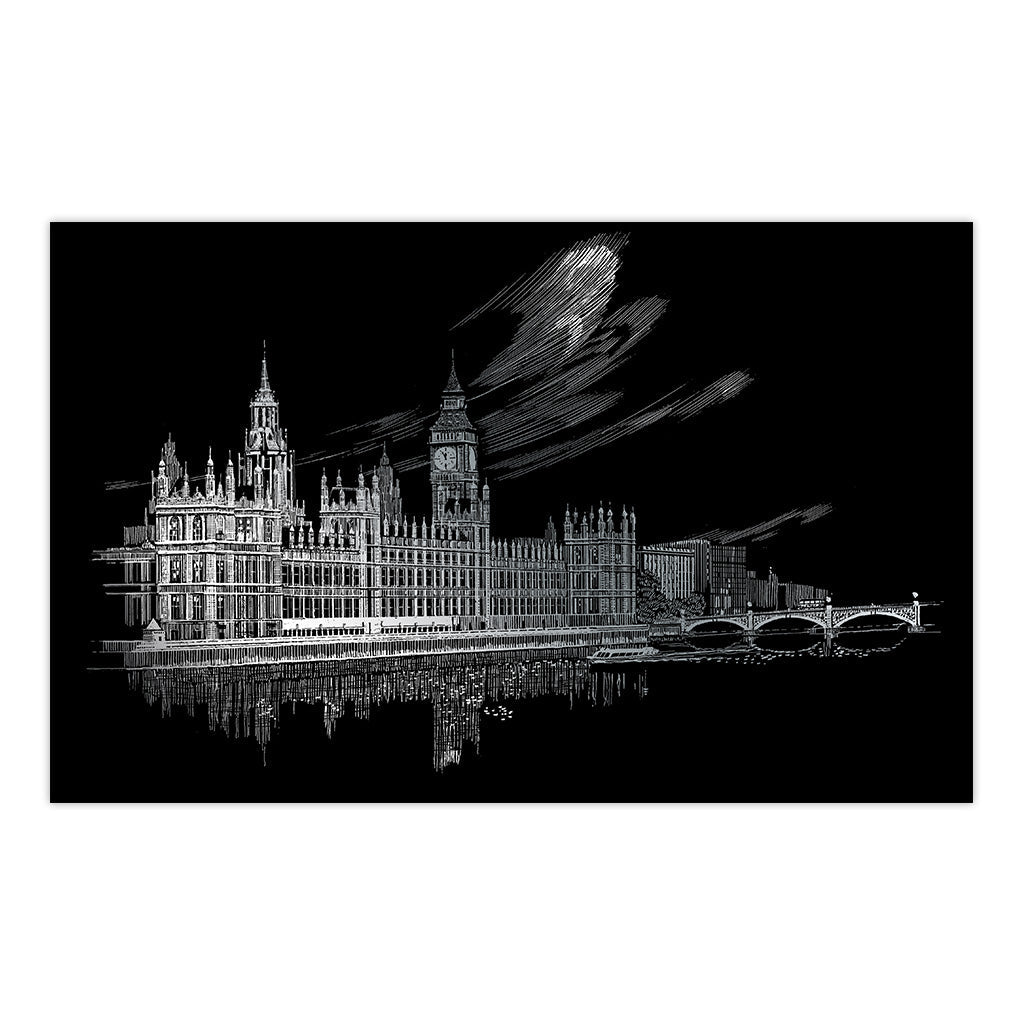FAM-1 | Engraving Art™ Famous Places 3pc Big Ben & Parliament 11.25" x 15.325" Silver Foil Project
