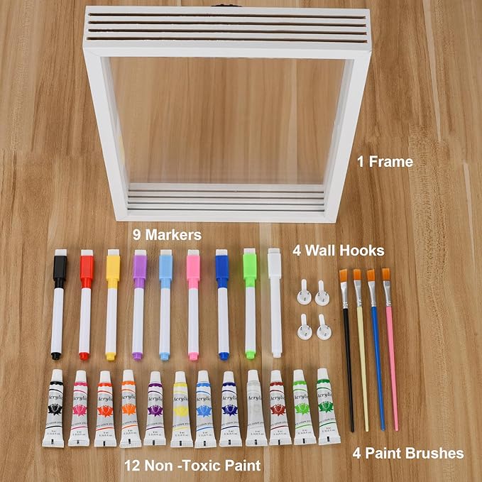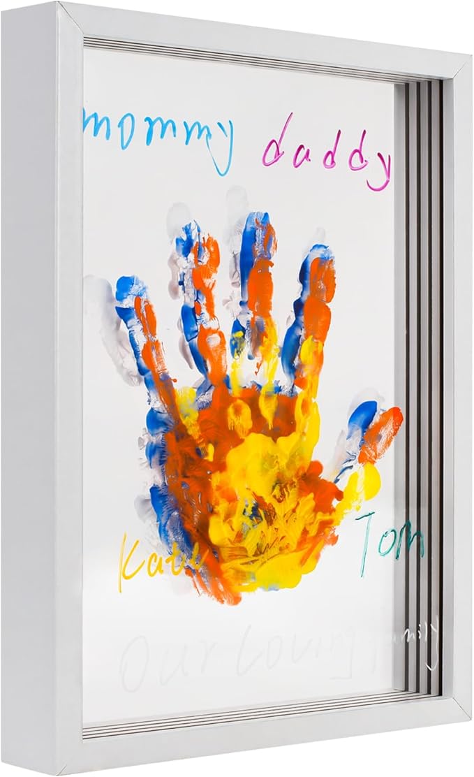 Family Handprint Frame Kit for 4 with 12 Paints&9 Pens,New Parents Gifts for Couples After Birth,Baby Shower Gifts for Mom and Dad,Mothers Fathers Day Craft Wood,Christmas Birthday Gift(White)
