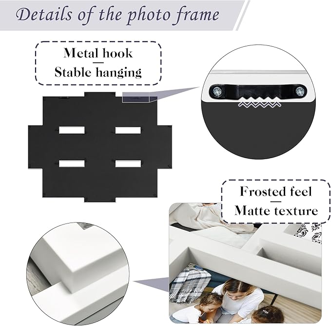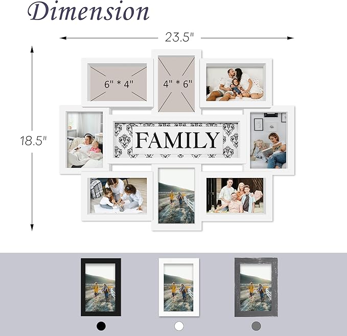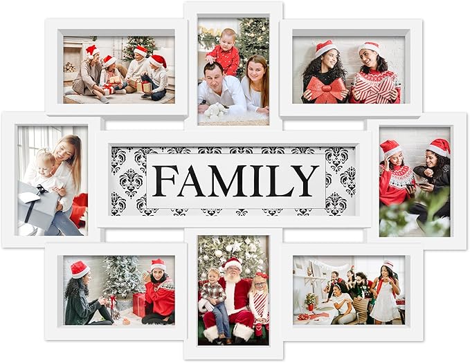 Family Photo Frame 22x17, PVC Picture Frames Collage Wall Decor 9 Opening Wall Hanging For 6x4 Photos 8 Pack, No-Assembly 3D Design Waterproof Memorial Keepsake, White