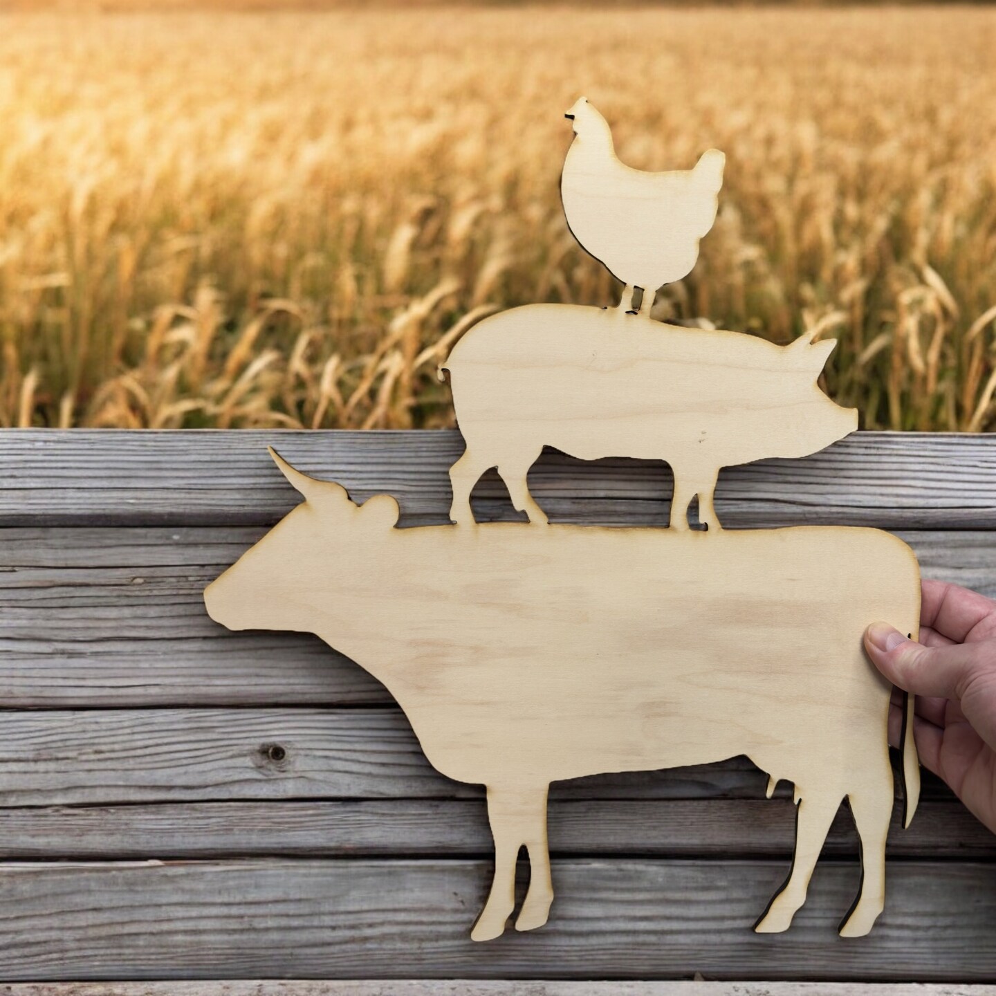 Farm Animals Raw Wood Cutout Sign 13x14 Wall Art