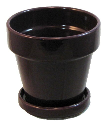 Farm House Ceramic Pot and Saucer plus Felt Feet - Eggplant Glaze - 4.5" x 4.3"