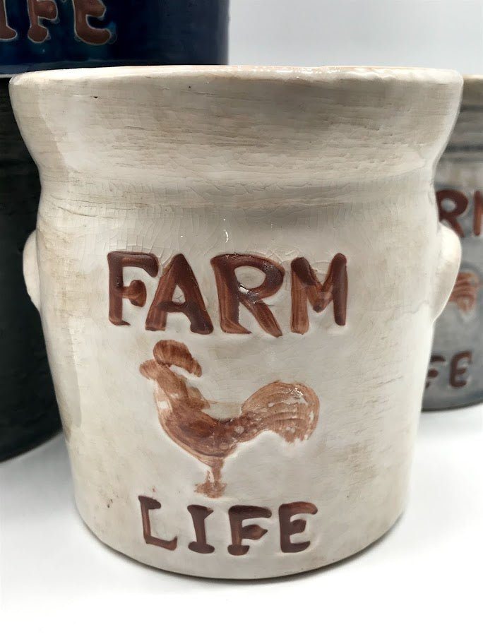 Farm Life Crock Planter - SMALL Blues