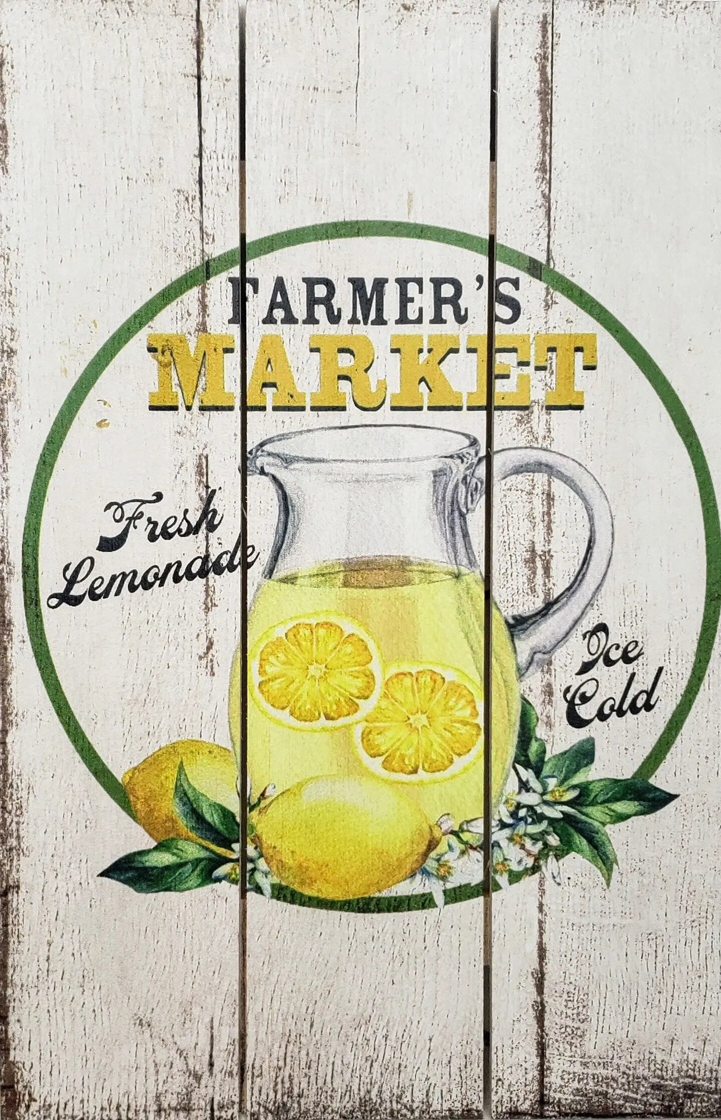 "Farmers Market Fresh Lemonade Ice Cold" Wooden Sign with Rope-CM2130