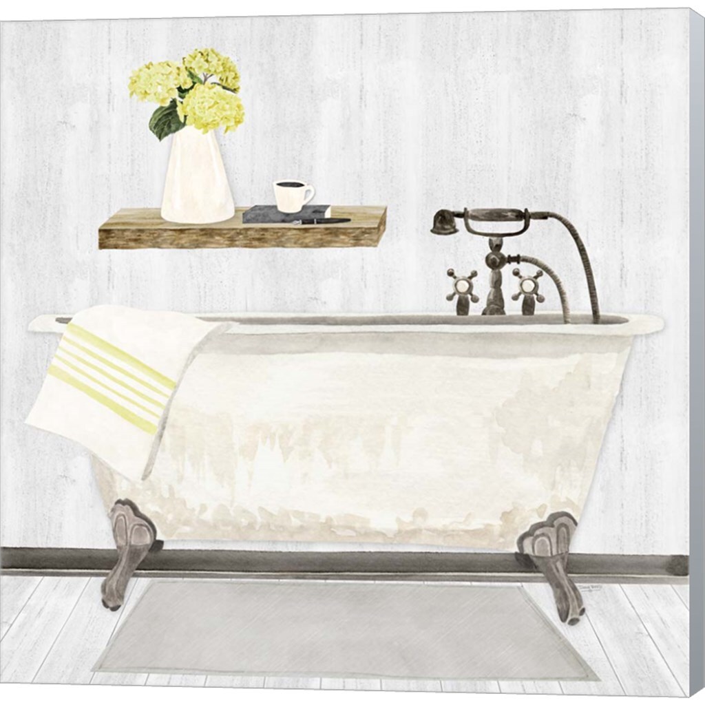 Farmhouse Bath I Gray & Yellow-Tub by Tara Reed 12" x 12" Canvas Wall Art