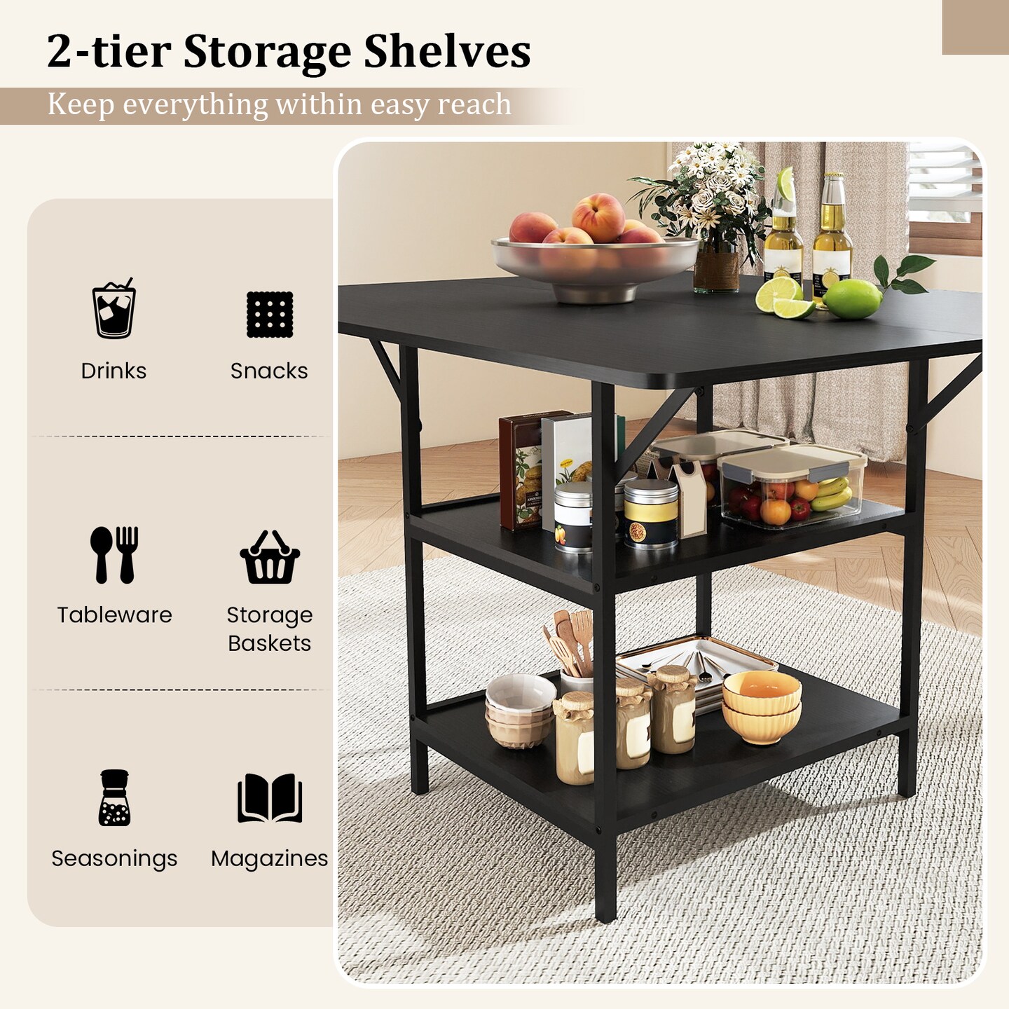 Farmhouse Dining Table with 2 Tier Storage Shelves Engineered Wood