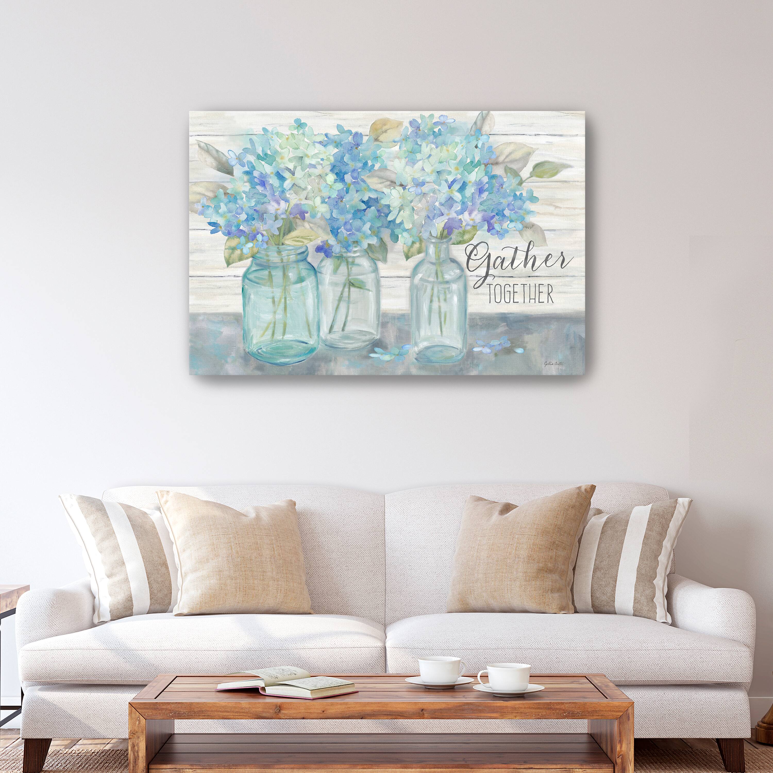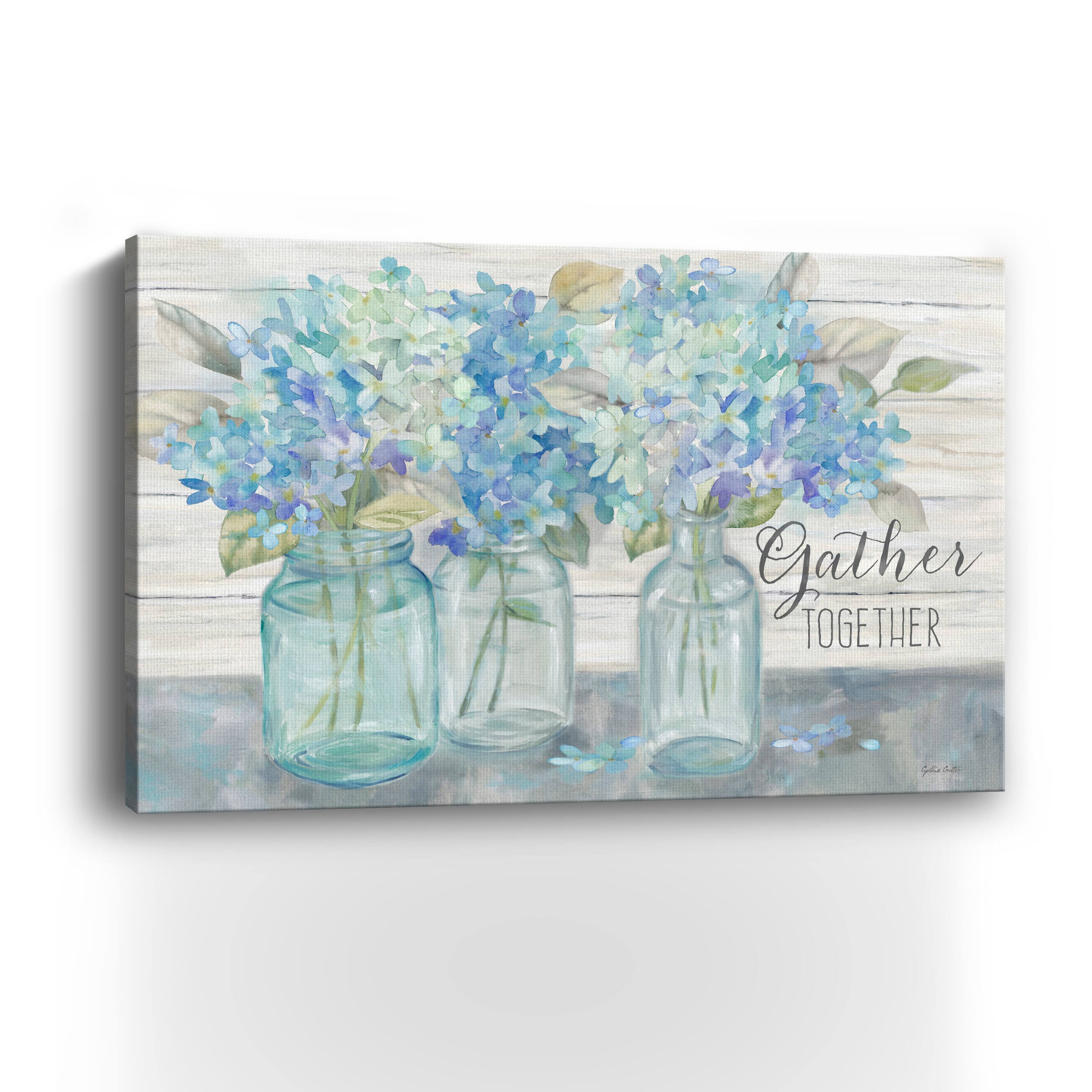 Farmhouse Hydrangeas In Mason Jars Gather Canvas Giclee