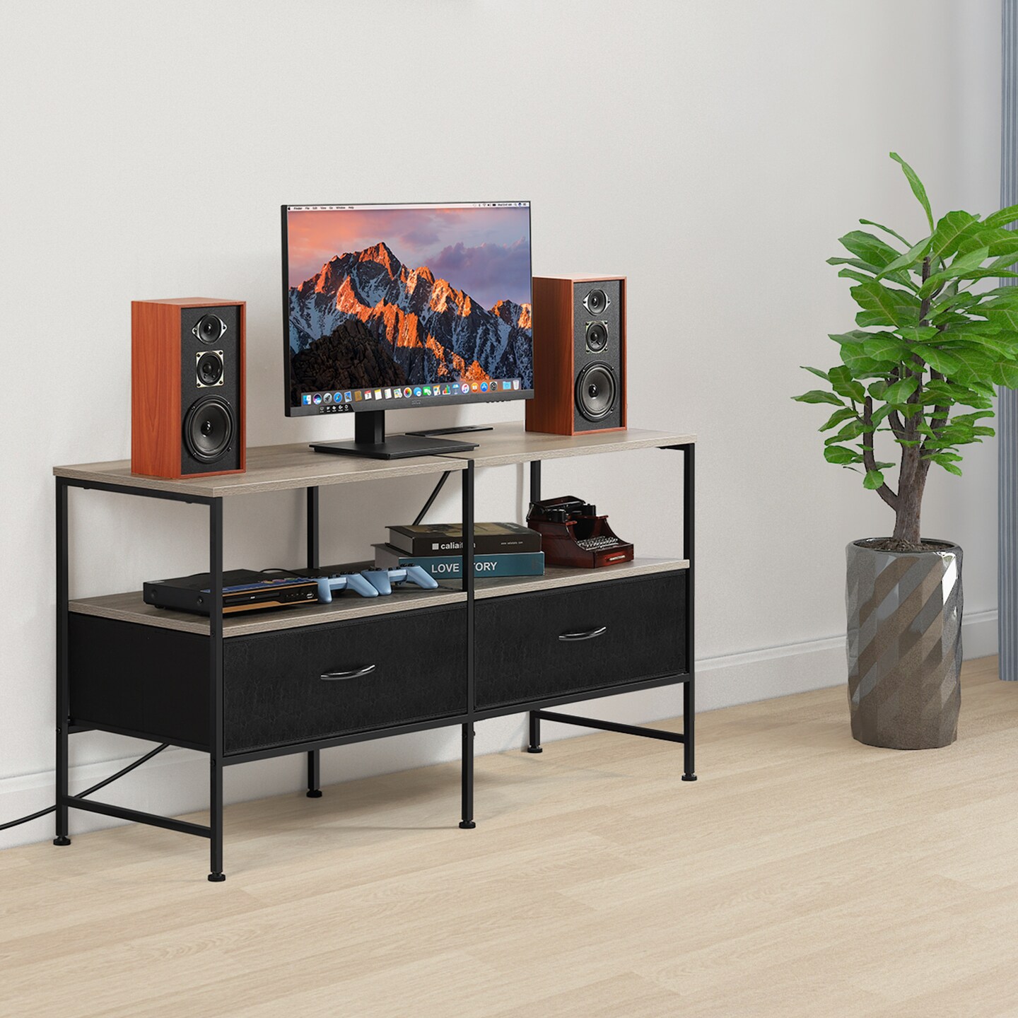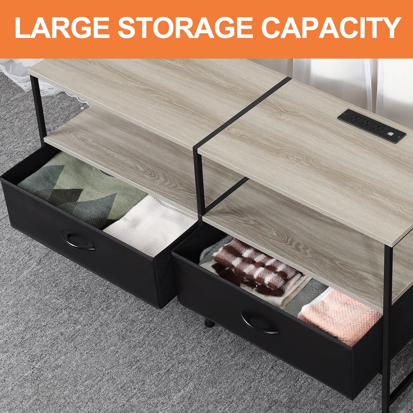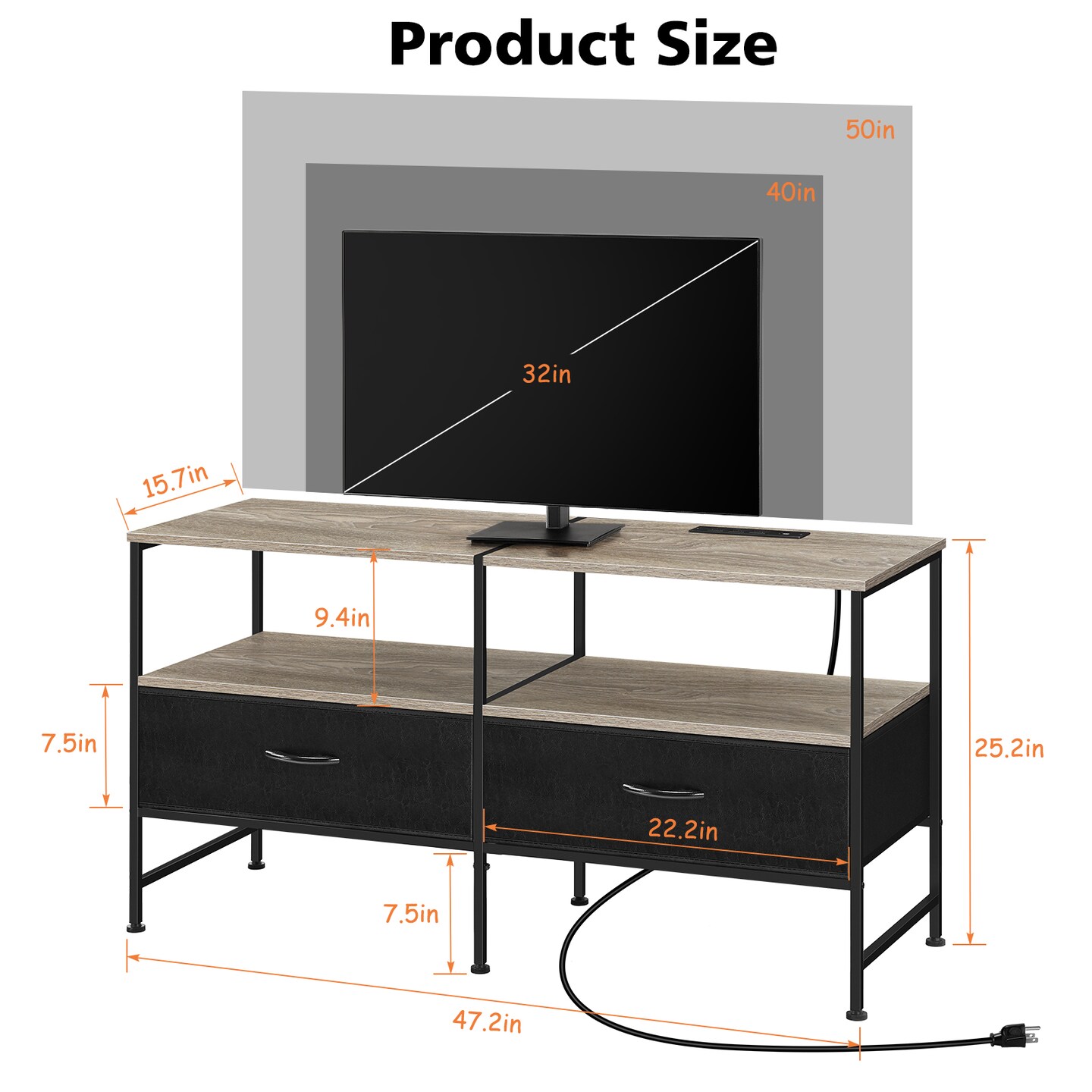 Farmhouse Style TV Cabinet Dresser with Outlet for Bedroom Living Room for 32/40/48/50 Inch TV