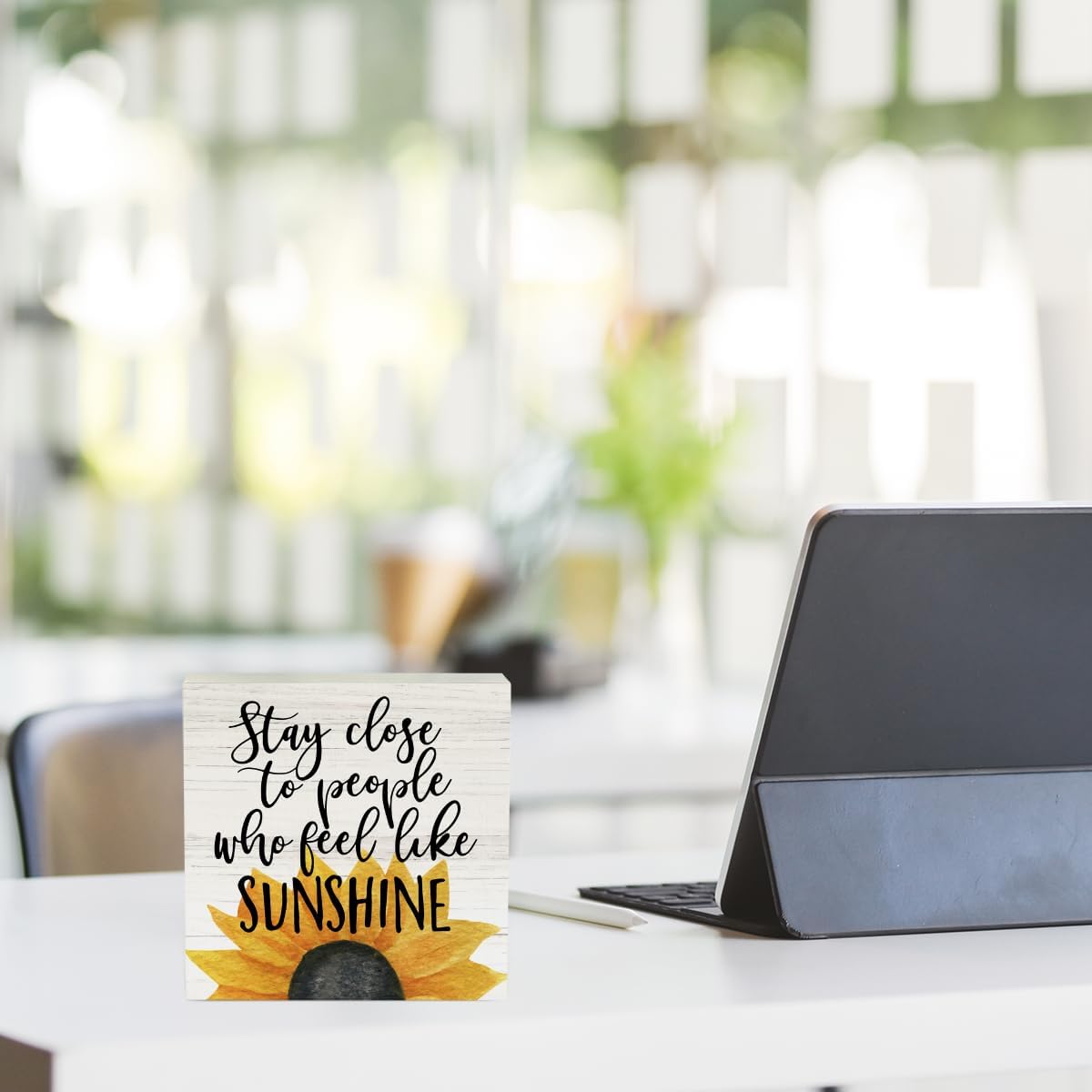 Farmhouse Sunshine Sunflower Wooden Box Sign Rustic Country Sunflower Box Sign Wood Sign Decor Summer Square Wood Sign Home Desk Tabletop Shelf Decor