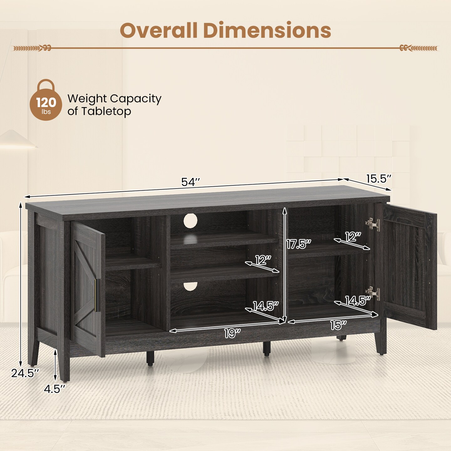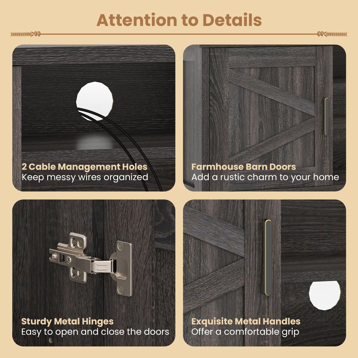 Farmhouse TV Stand for TVs up to 65" with 2 Storage Cabinets