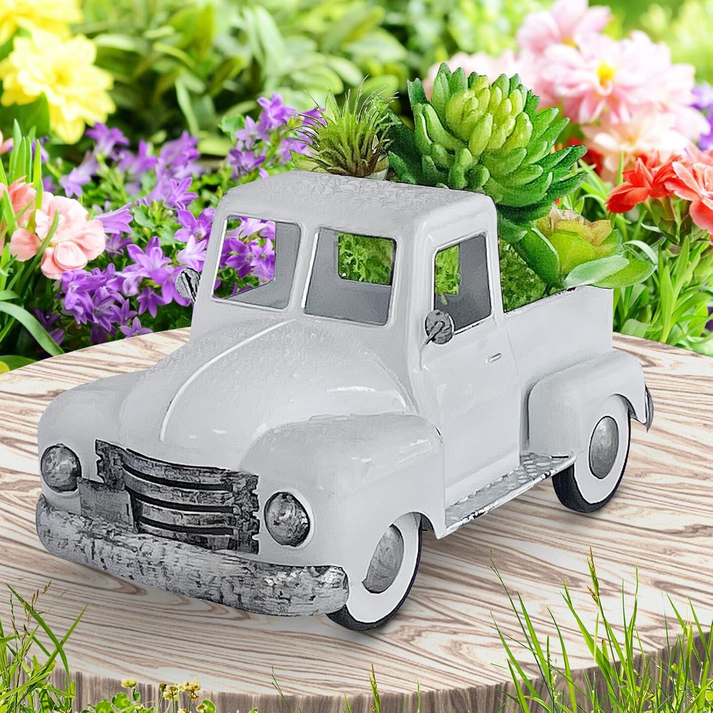 Farmhouse White Vintage Metal Truck – Rustic Pickup Planter for Indoor/Outdoor Fall & Tabletop Decor