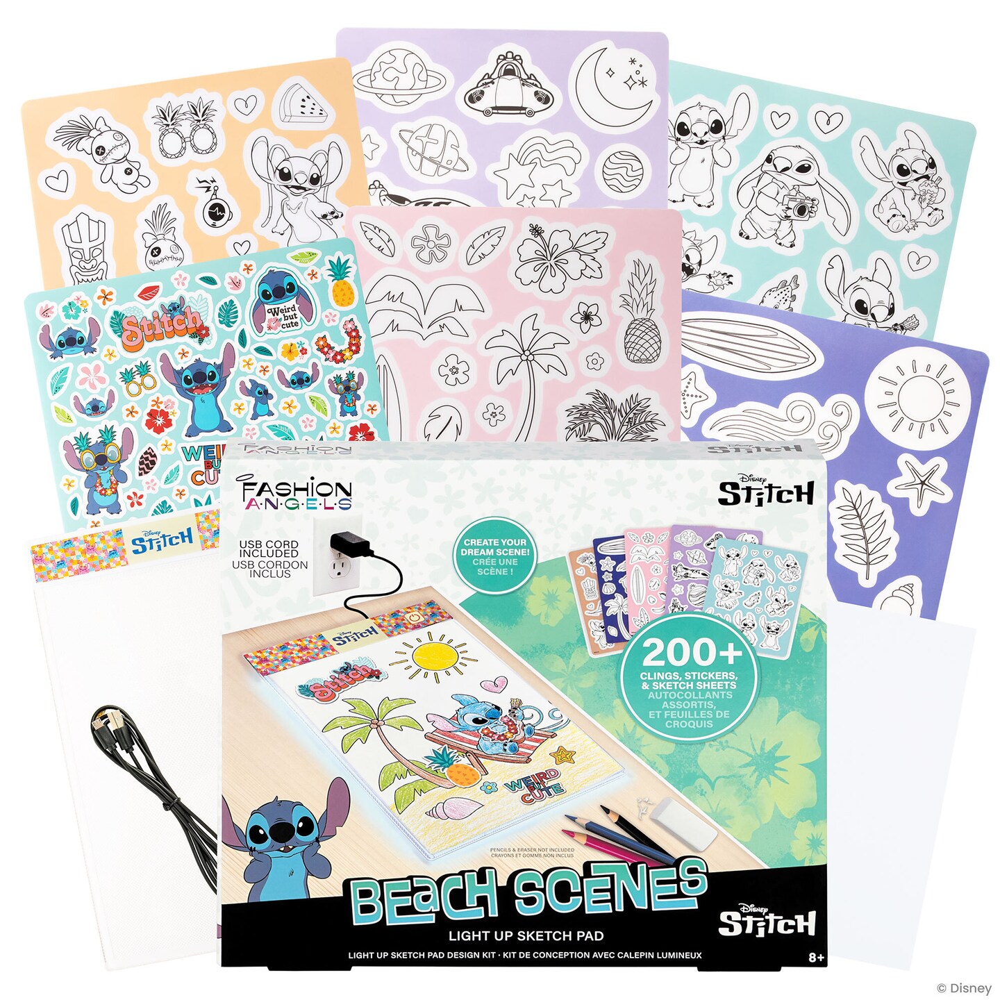 Fashion Angels: Light Up Sketch Pad - Disney Stitch Beach Scenes - Design Art Kit, Illuminated Tracing Pad, Reusable Clings, Sticker Sheet, Kids 8+