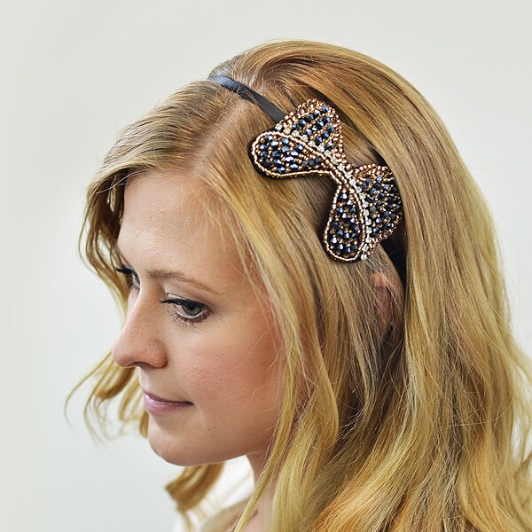 Fashion Bow Beaded Headband 3 1/2" x 2 1/4"
