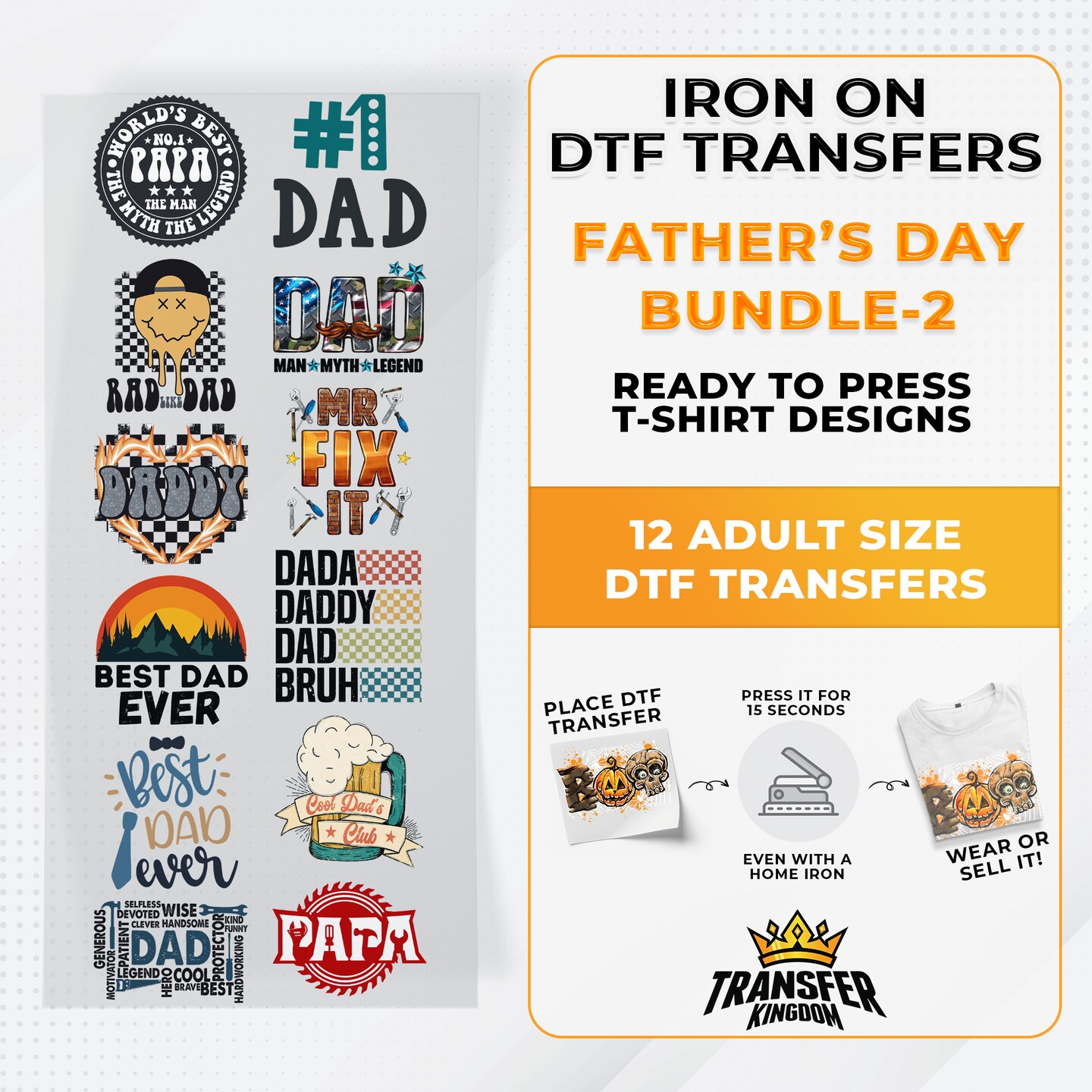 Father's Day Bundle Iron on DTF Transfer Bundle 2 - 12 Best Seller Ready To Press T-shirt Designs