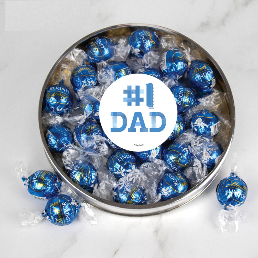 Father's Day Candy Gift Tin with Chocolate Lindor Truffles by Lindt Large Plastic Tin with Sticker By Just Candy