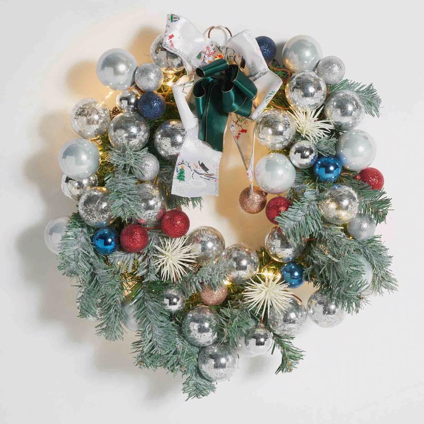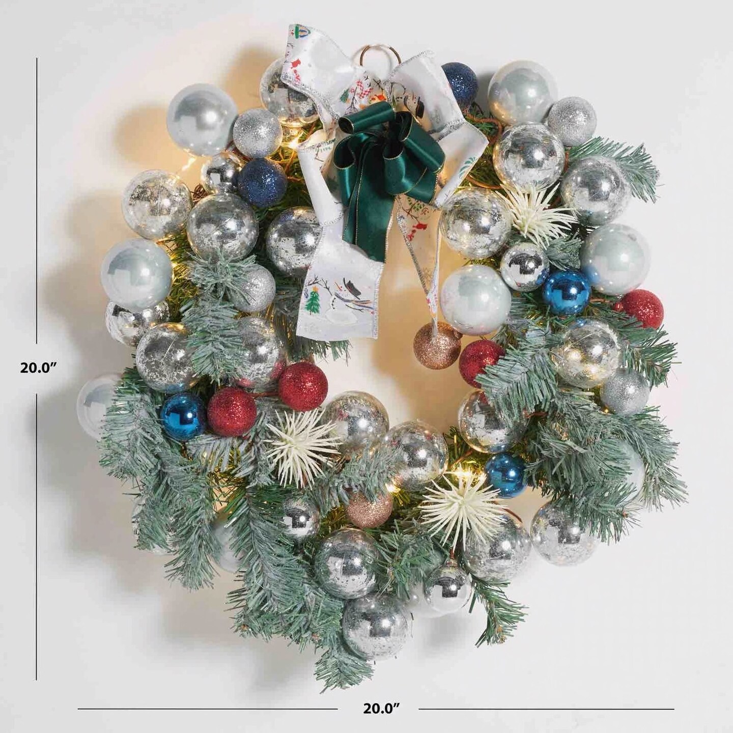 Faux 20 Inch Pine LED Wreath W/ Ornaments