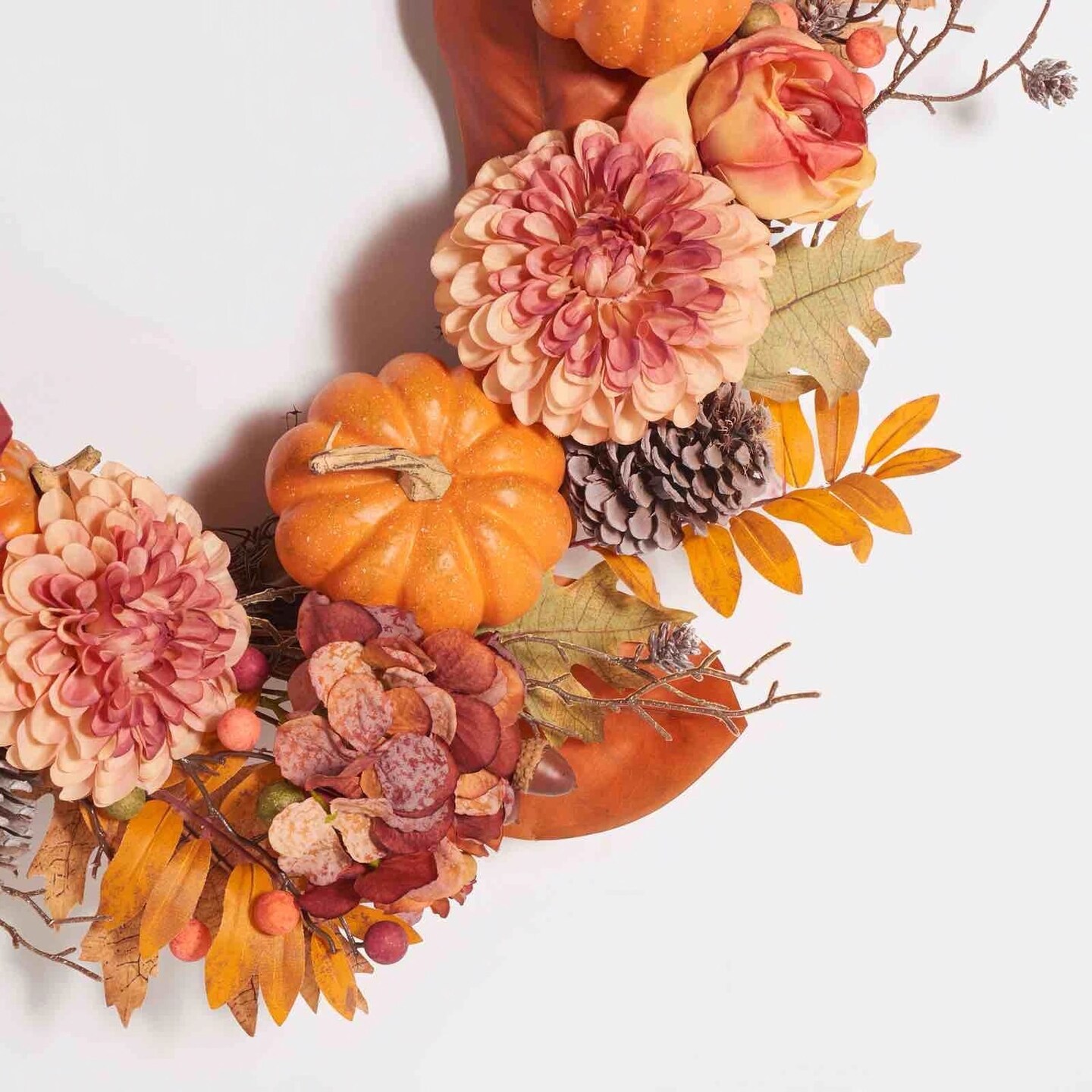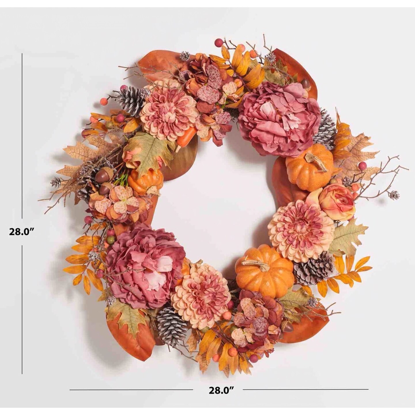 Faux 28 Inch Peony & Pumpkin Wreath W/ Pine Cones