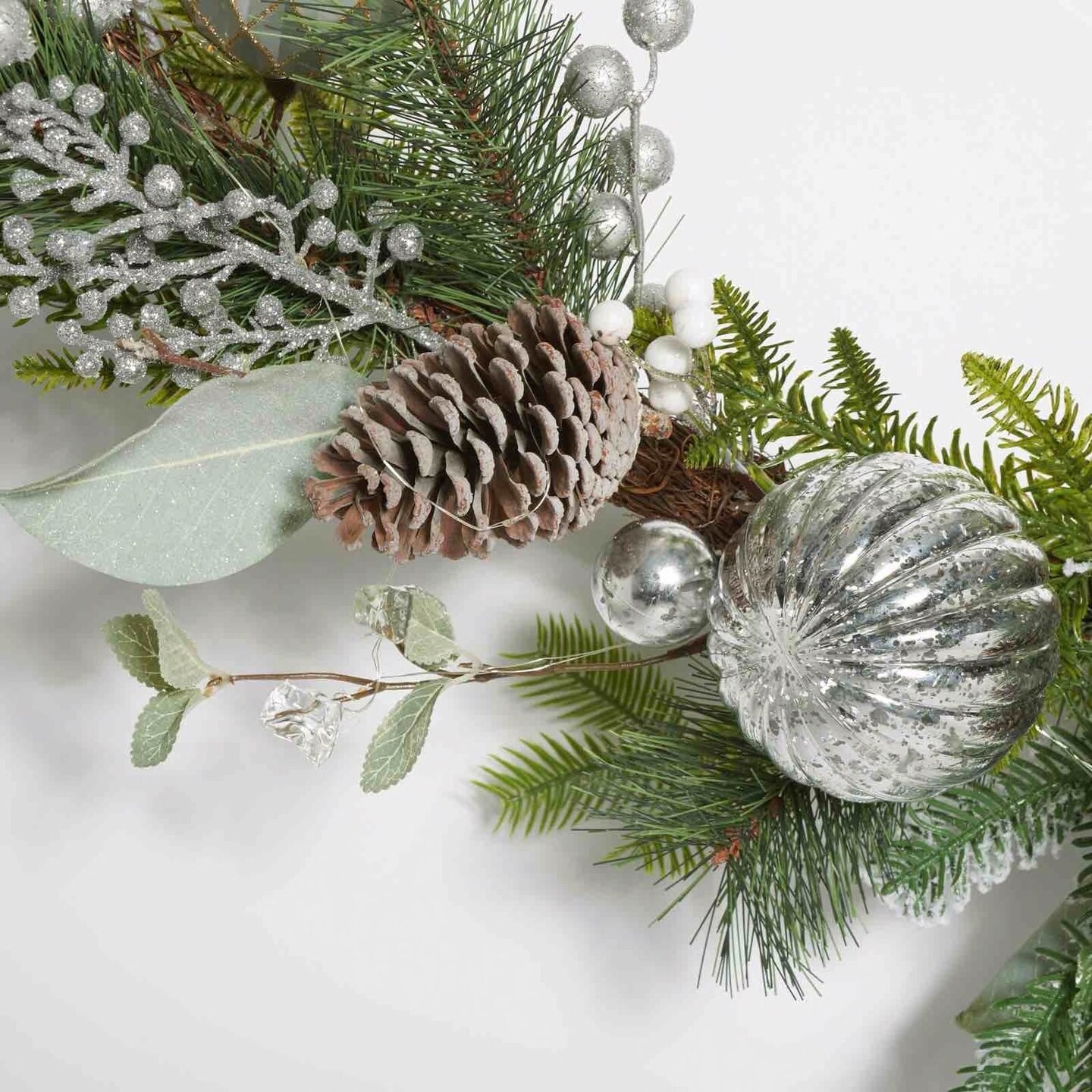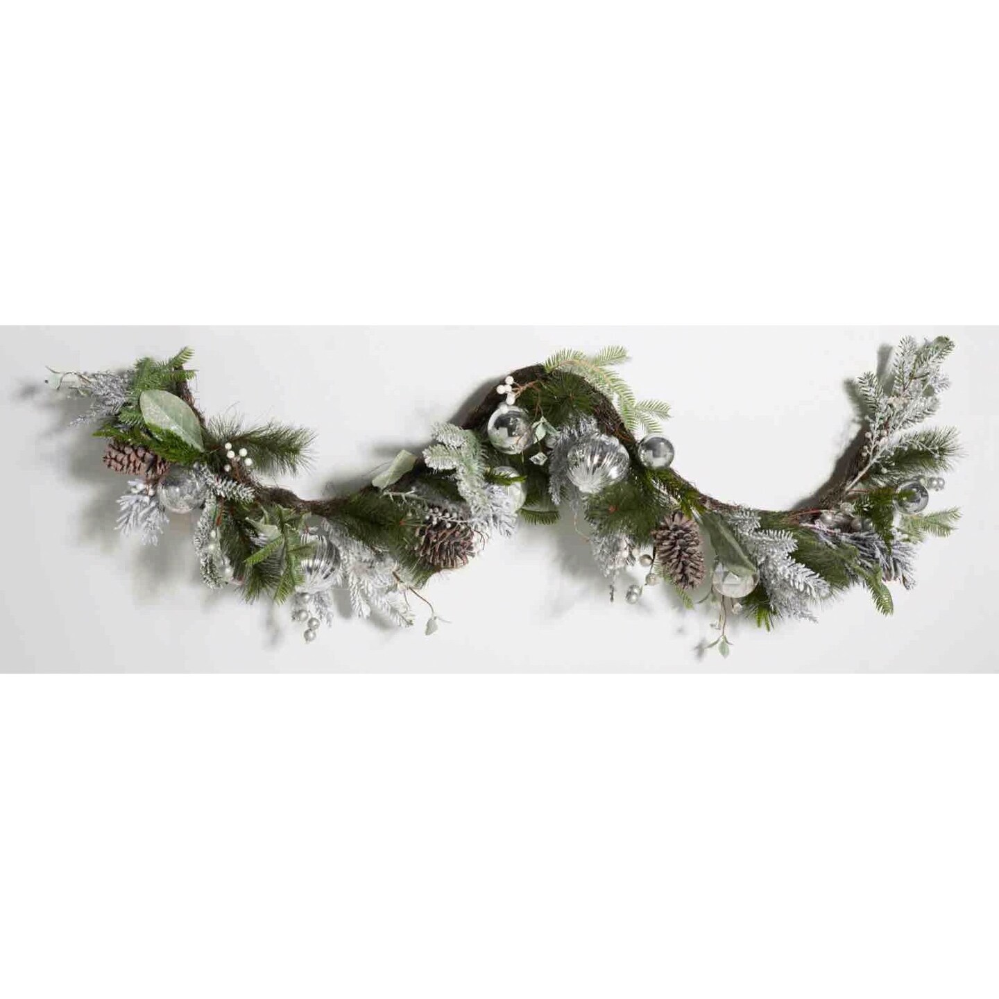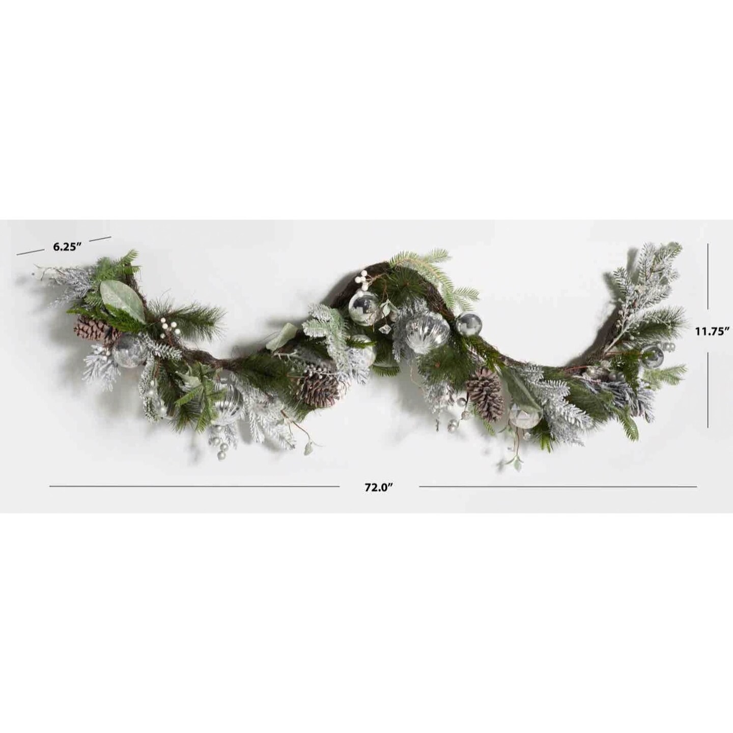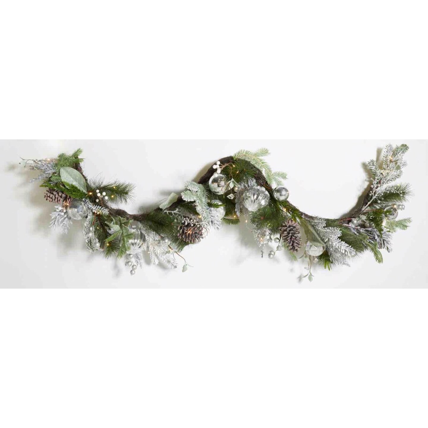 Faux 28 Inch Snowy Pine LED Garland W/ Ornaments