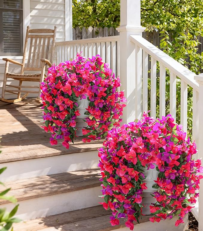 Faux Bougainvillea Artificial Flowers Plants for Outdoors Outside Decoration, 2pcs Fake Flowers Silk Long Trailing Vines UV Resistant Realistic for Front Door Porch Planter Urn Patio Balcony Yard, Mix
