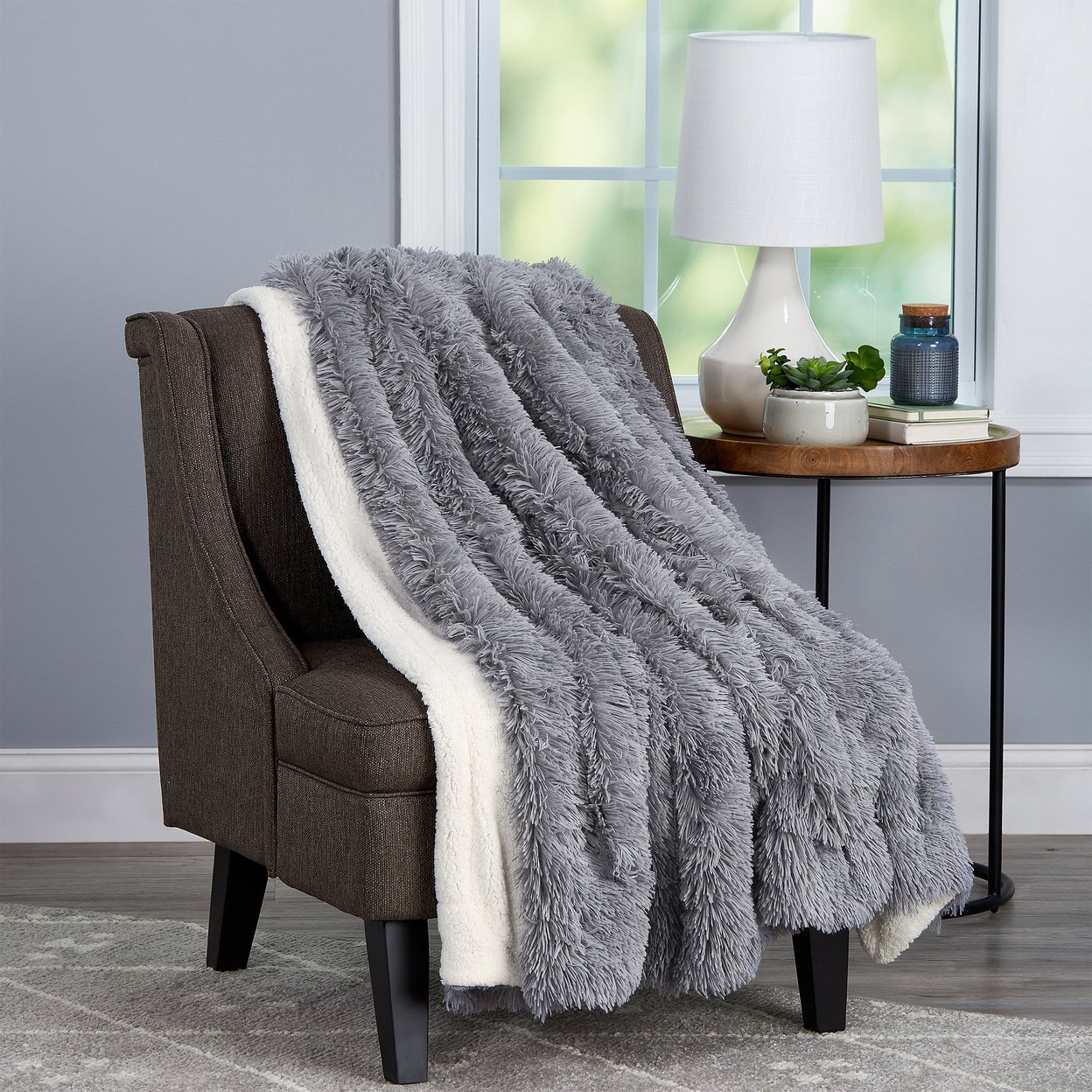 Faux Faux Throw Blanket Gray Xl Soft Sherpa Back Plush 70X60"