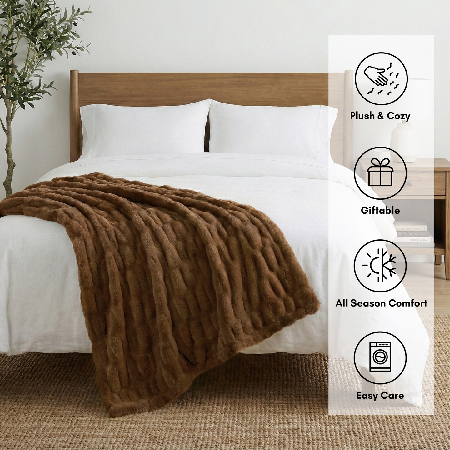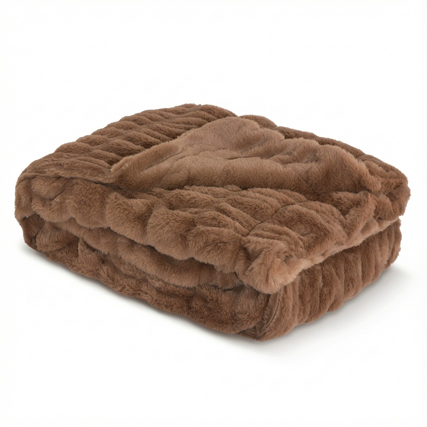 Faux Fur Throw Blanket - 50x60 Inch Luxury Rouched Design - Soft Plush Blanket for Couch, Sofa, and Bed - Premium Warm Cozy Home Decor - Brown