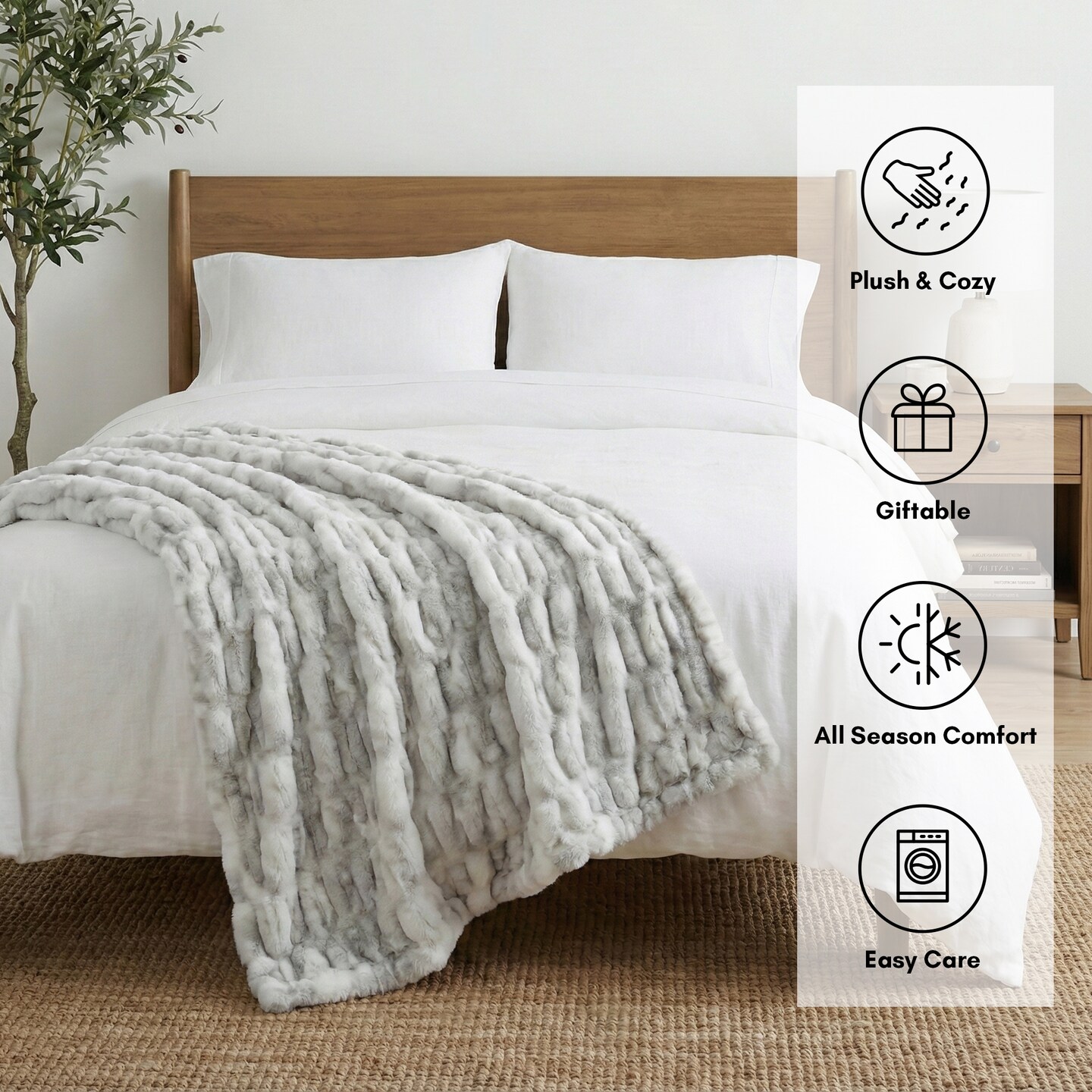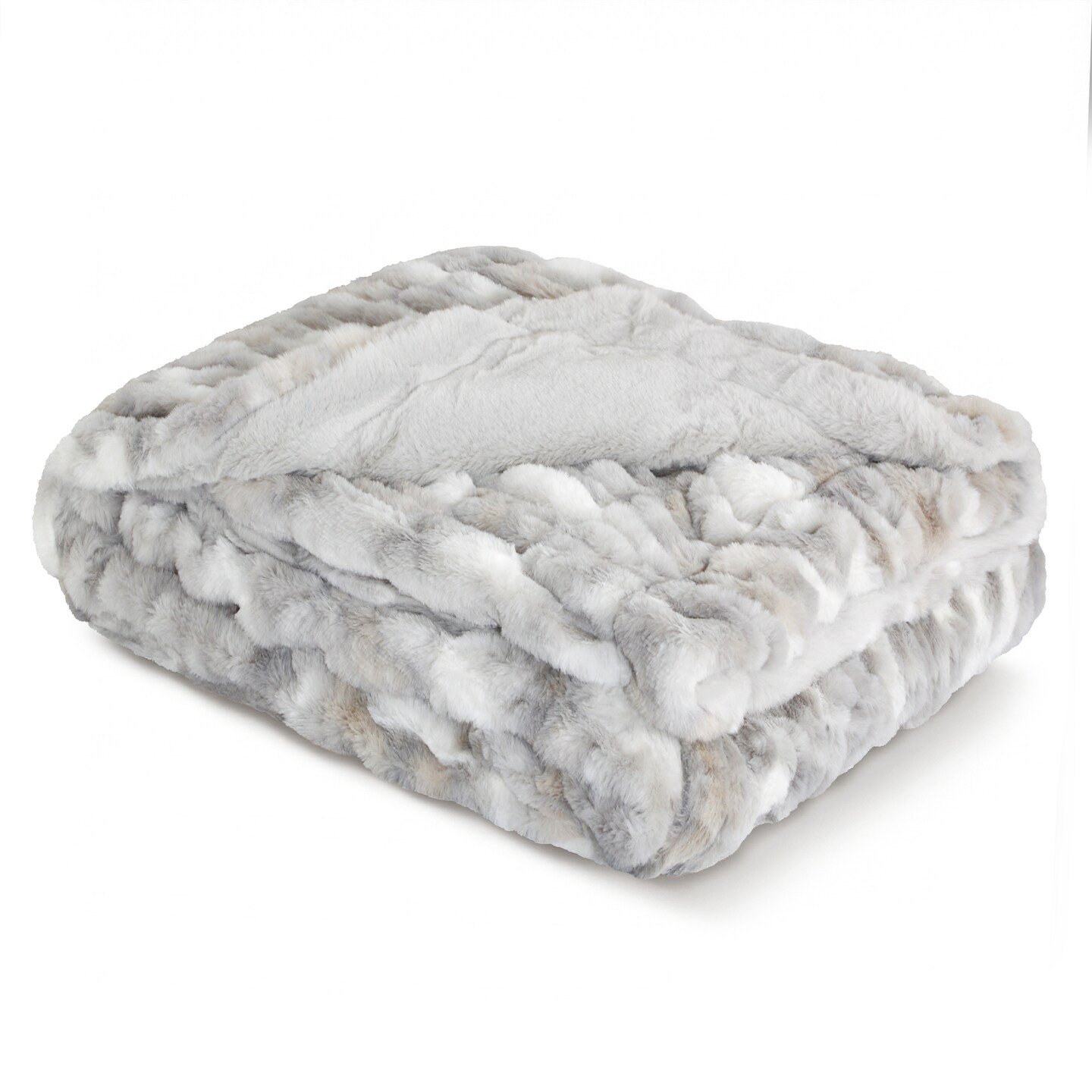Faux Fur Throw Blanket - 50x60 Inch Luxury Rouched Design - Soft Plush Blanket for Couch, Sofa, and Bed - Premium Warm Cozy Home Decor - Rabbit