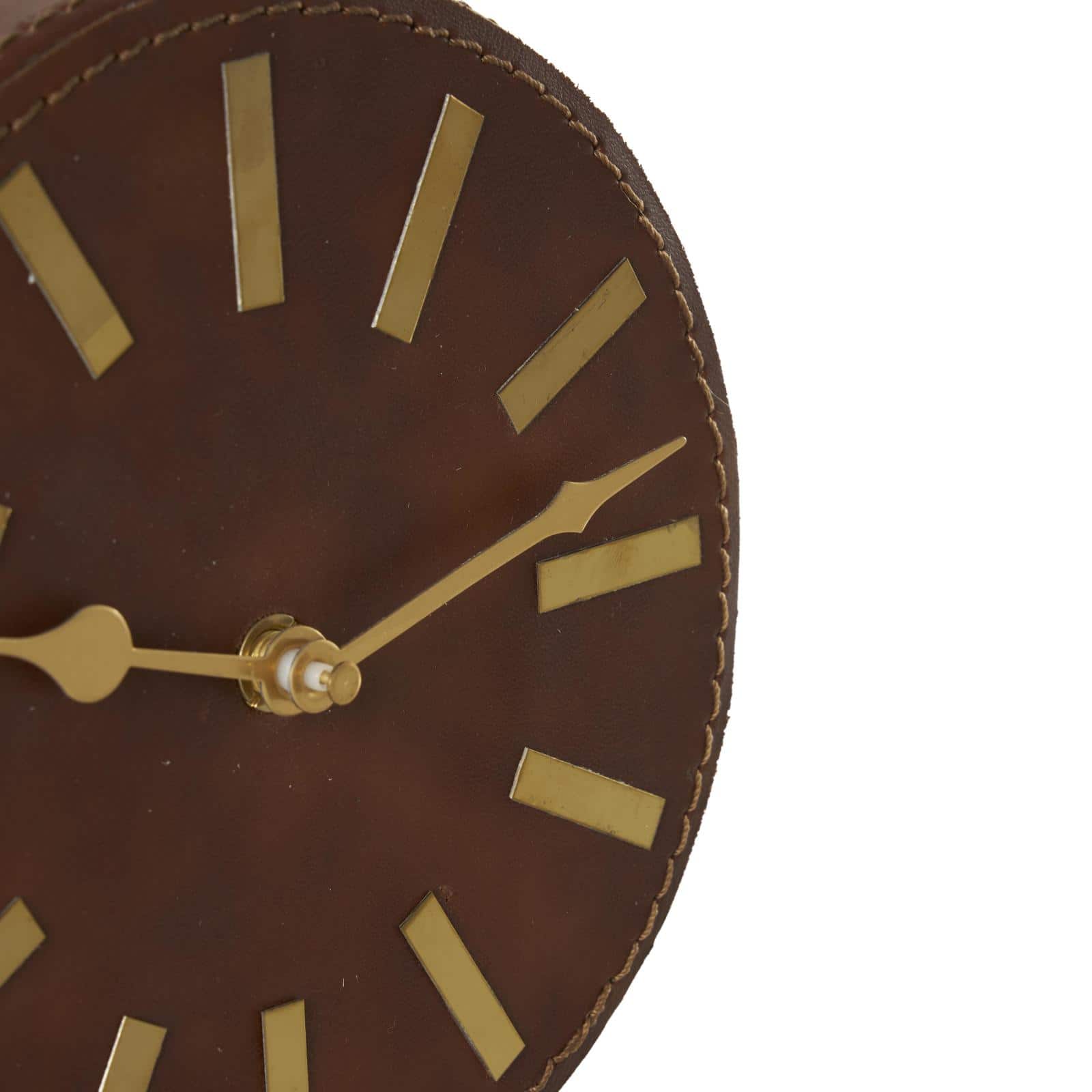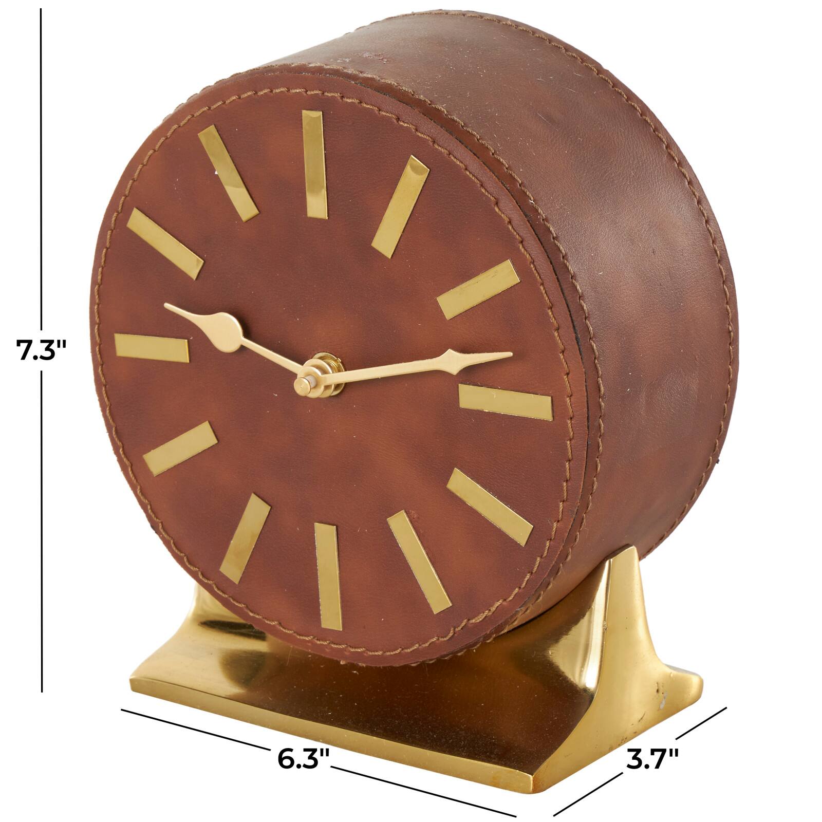 Faux Leather Round Decorative Clock with Rectangular Base
