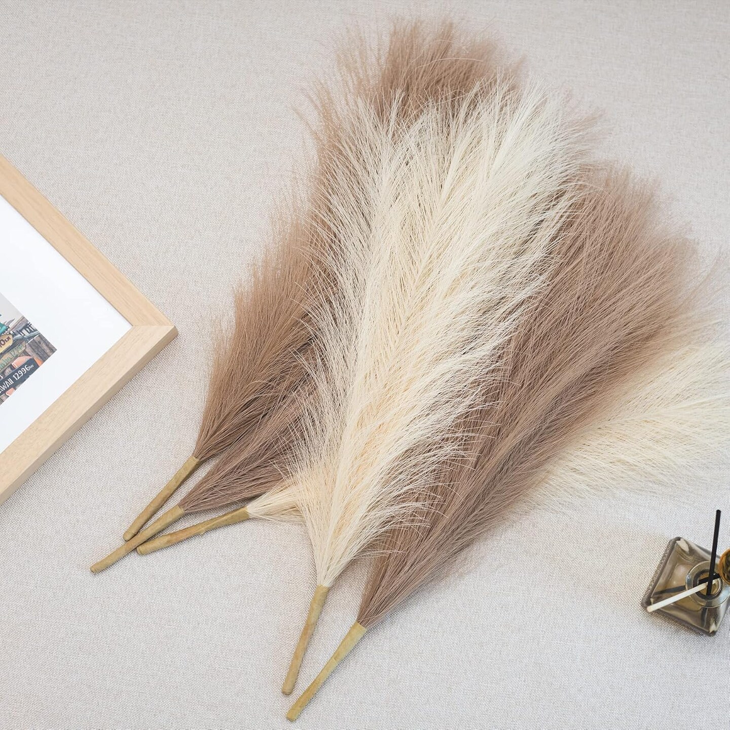 Faux Pampas Grass, 18"/45cm Artificial Pampas Grass Fluffy 6 Stem pompous Grass Flower Arrangement for Boho Home Wedding Decoration (Beige,Taupe)