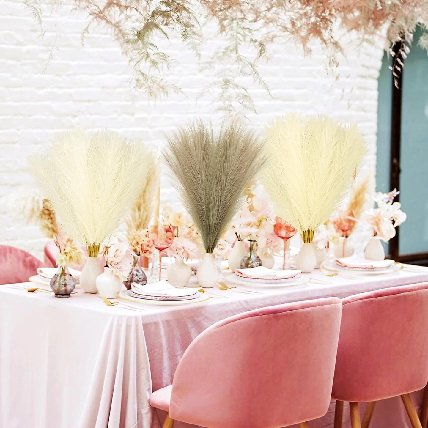 Faux Pampas Grass (Beige & White & Light Brown)