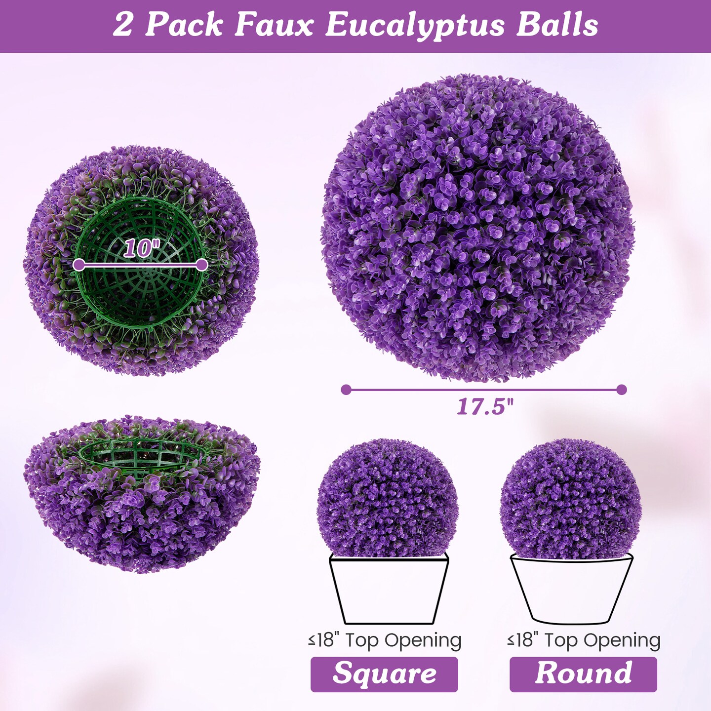 Faux Purple Eucalyptus Decorative Balls with 7 Layers Leaves for Backyard Porch Garden and Wedding