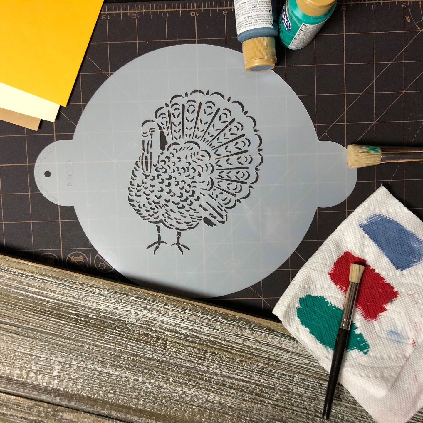 Feathered Turkey Cake & Pie Stencil | C1044 by Designer Stencils | Cake Decorating Tools | Baking Stencils for Royal Icing, Airbrush, Dusting Powder | Reusable Plastic Food Grade Stencil for Cakes | Easy to Use & Clean Cake Stencil