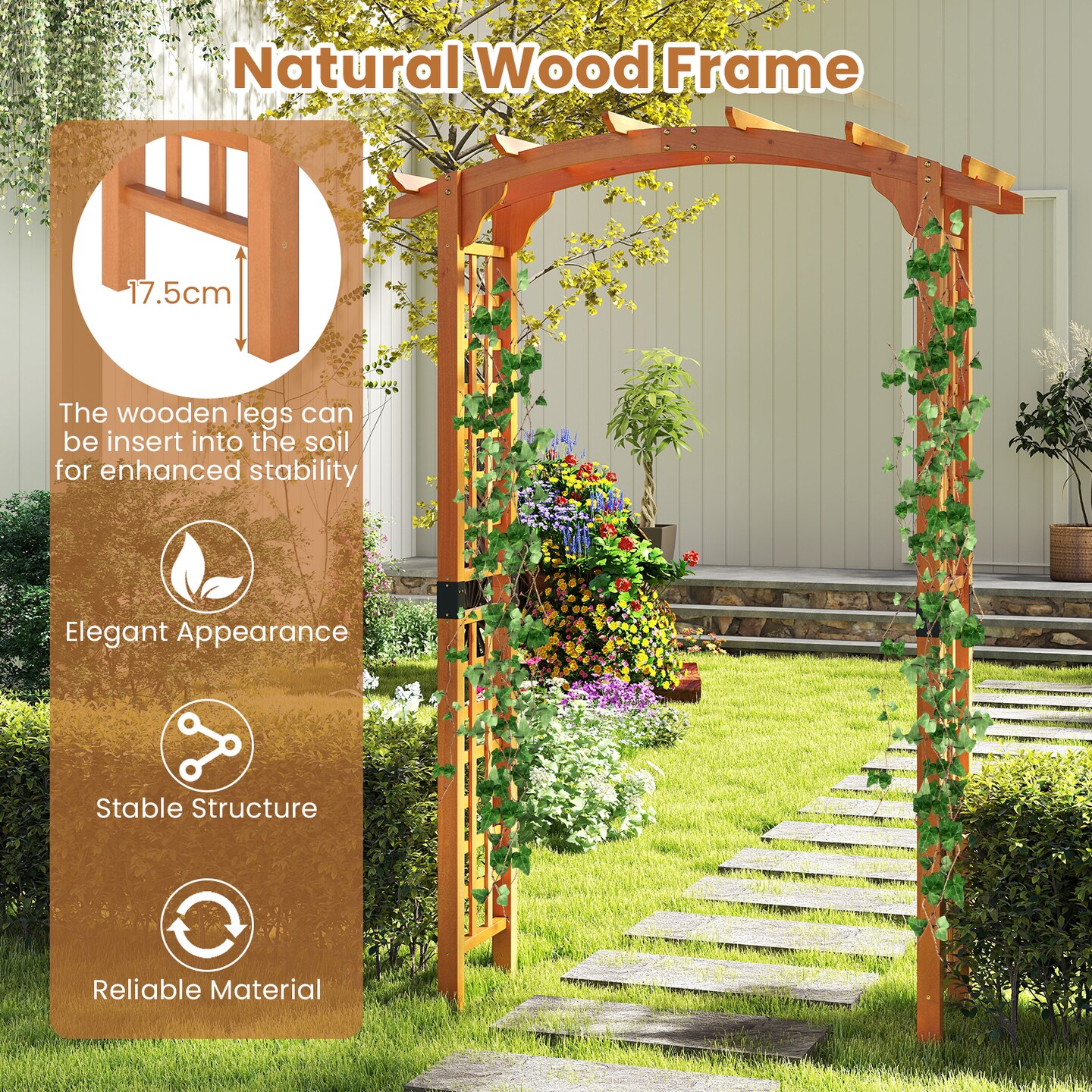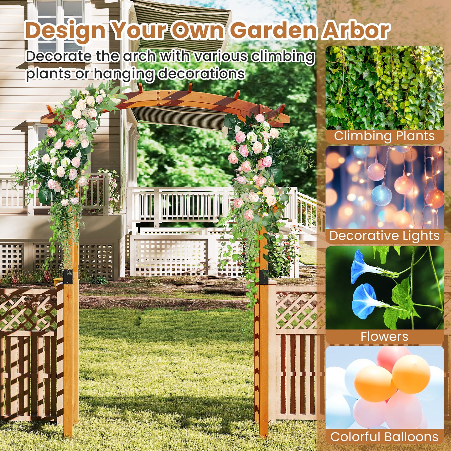 Feet Garden Arch Wooden Arbor Outdoor Wood Trellis for Climbing Plants
