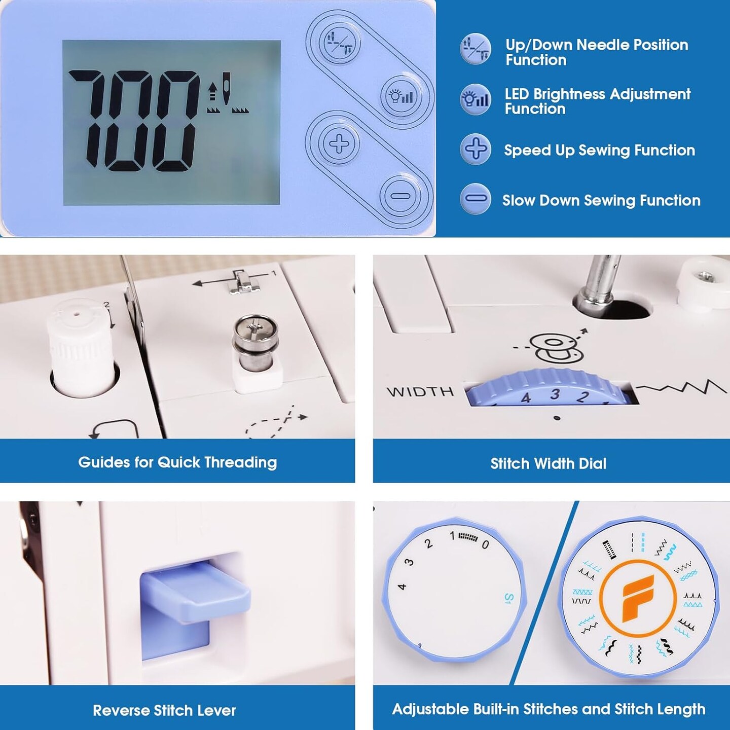 FEIYUE FYe360 Sewing Machine with Adjustable Needle Positions, LCD Display, Automatic Needle Threader, Full Size & Portable, 23 Built-in Stitches