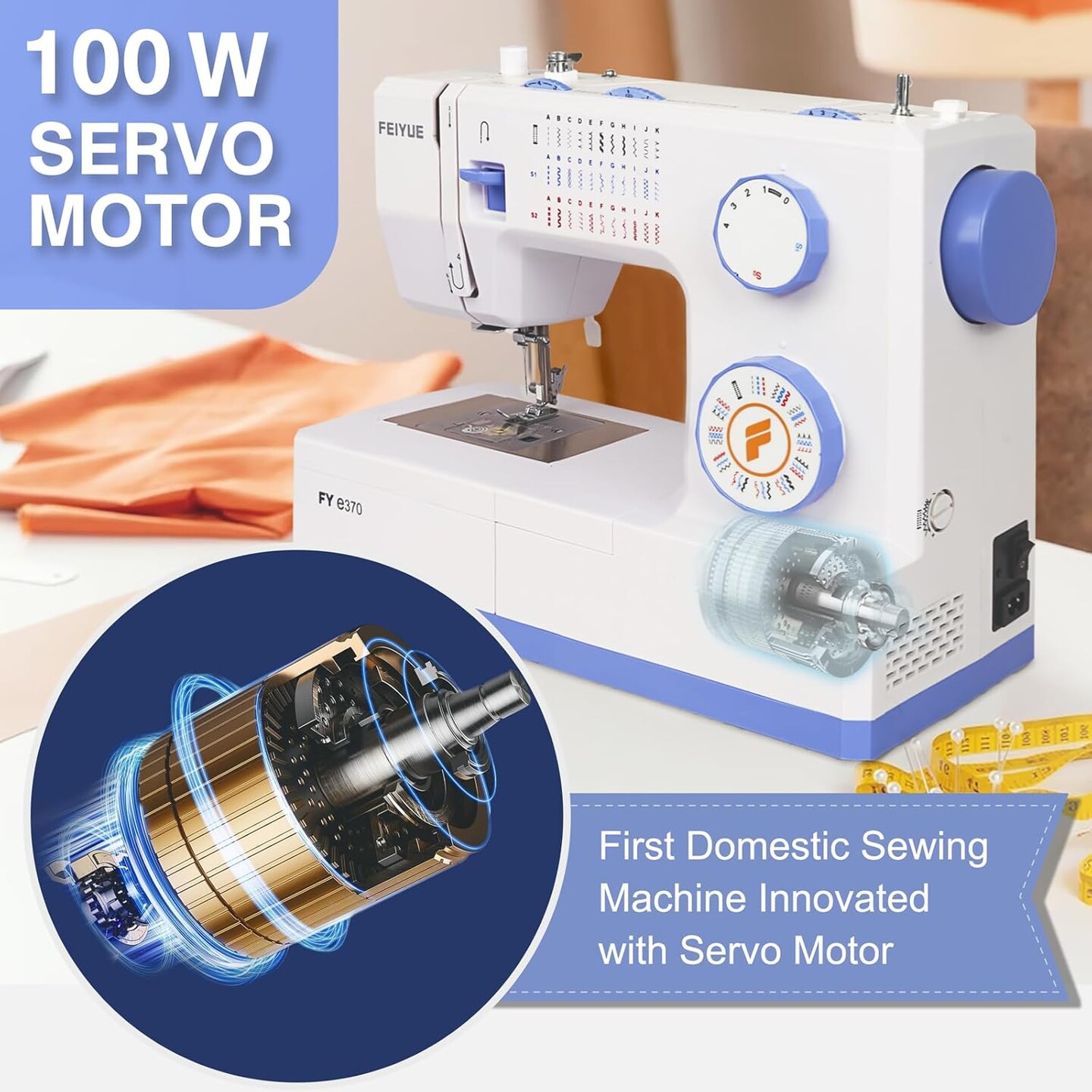 FEIYUE FYe370 Sewing Machine with Multiple Needle Positions, Energy Saving Servo Motor, Heavy Duty & Portable, 34 Built-in Stitches, Speed Control, Easy to Use, Great for Beginners