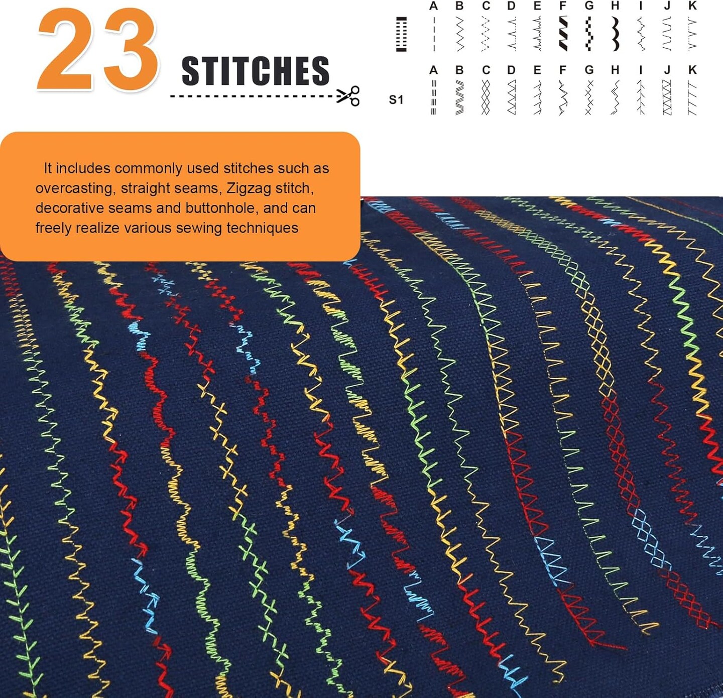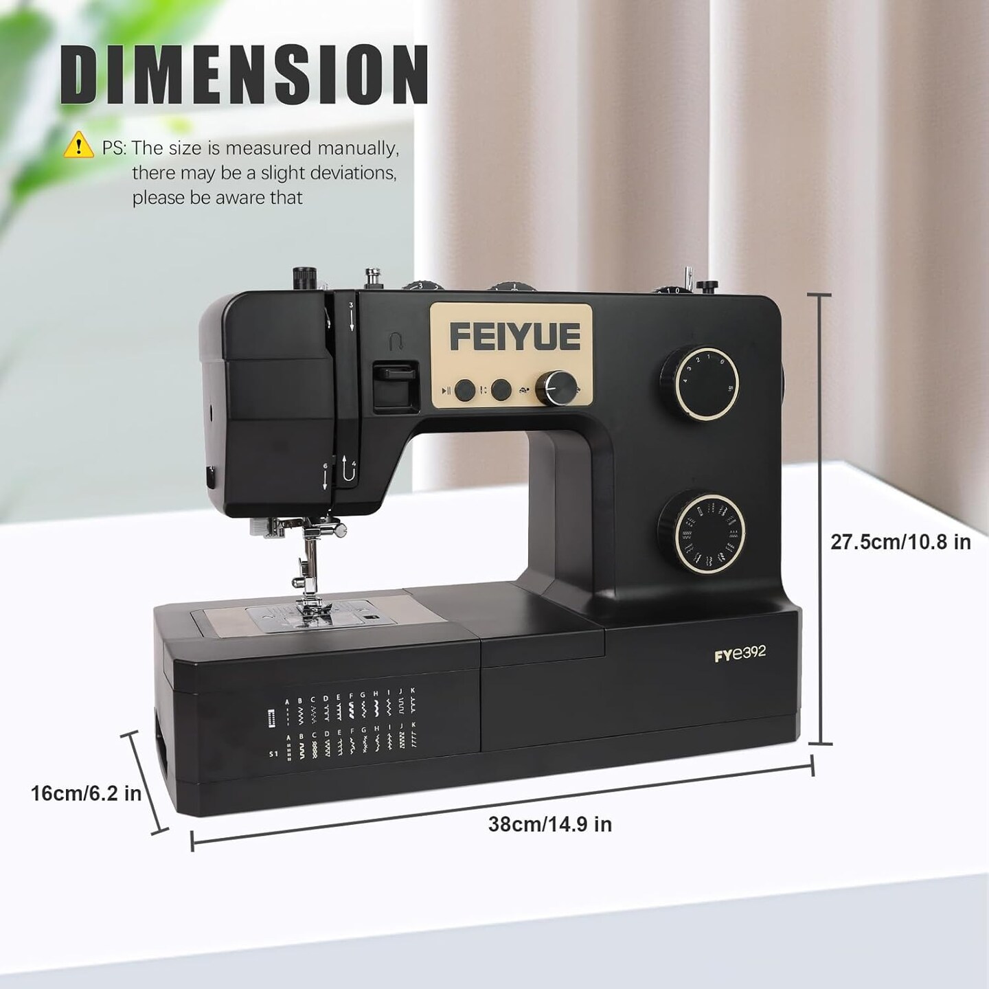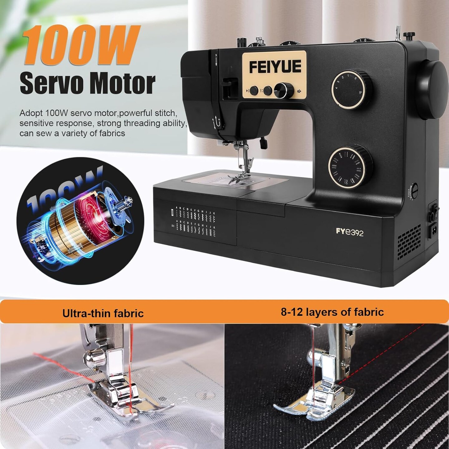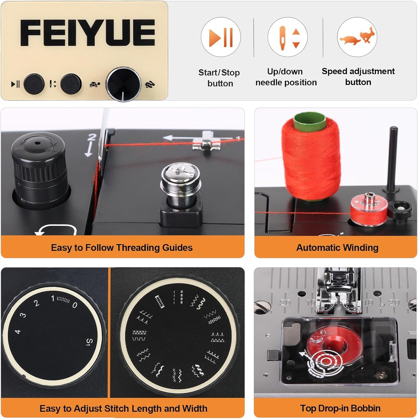 FEIYUE FYe392 Sewing Machine with Adjustable Speed, Heavy Duty & Portable, Multiple Needle Positions, 6 Bobbins & 5 Included Sewing Feet, Easy for Beginners