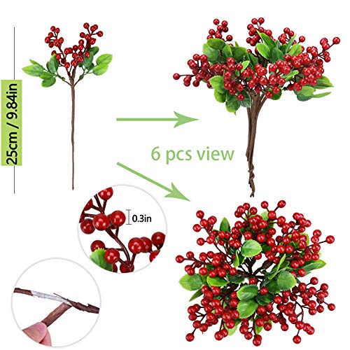 Felice Arts 6 Pack Christmas Picks Artificial Red Berry Stems Fake Holly Berries for Xmas Tree Ornaments DIY Wreath Vase Holiday Home Decor