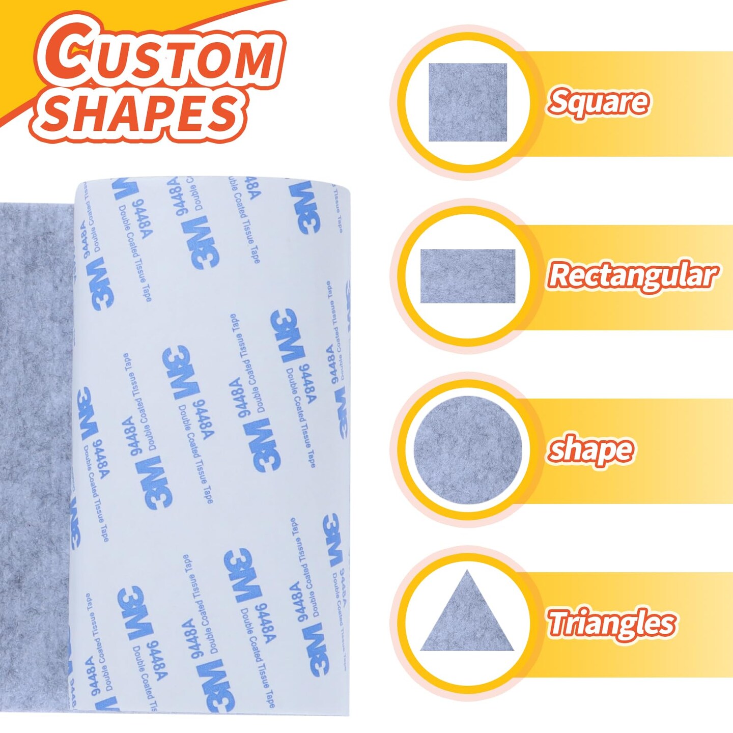 Felt Furniture Pads, Non Slip Self Adhesive Cuttable Felt Tape Gray Heavy Duty Felts Strip Roll for Protecting Hardwood Floors Chair Wall Protector (40 x 5 x 0.12 Inch)