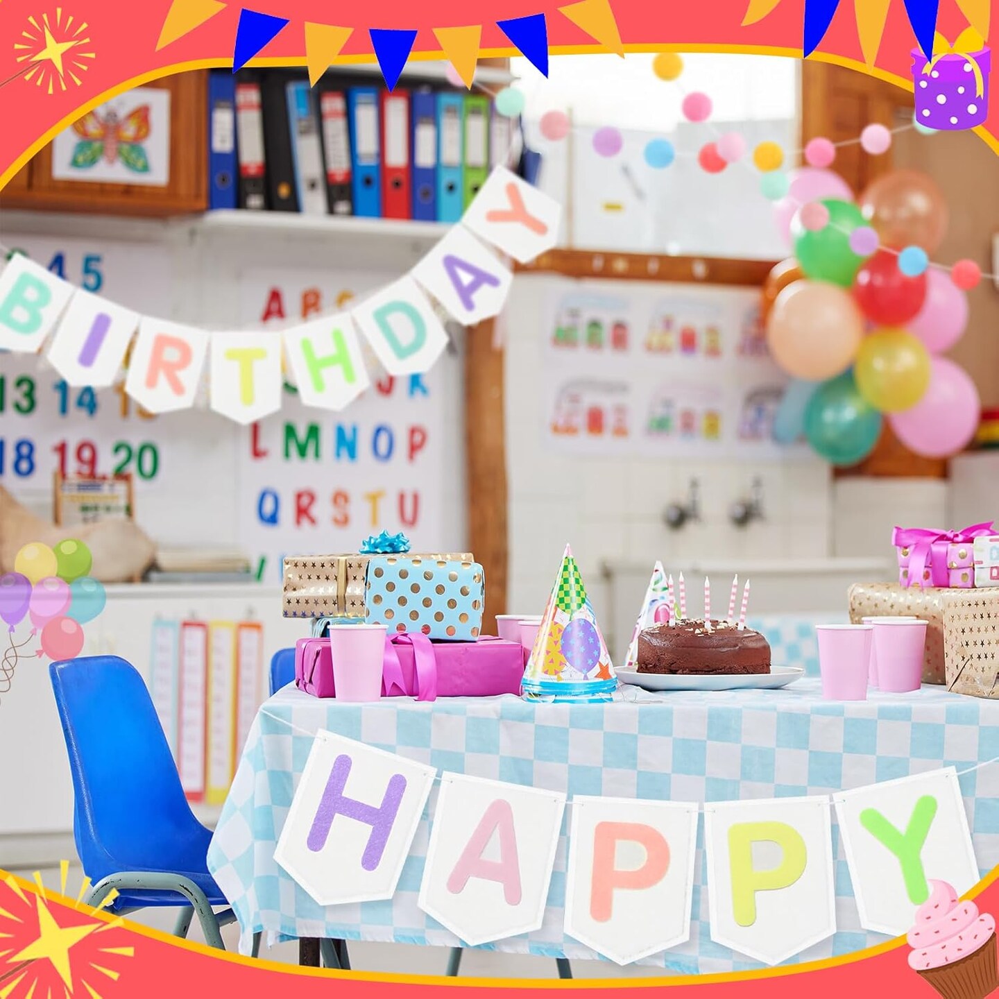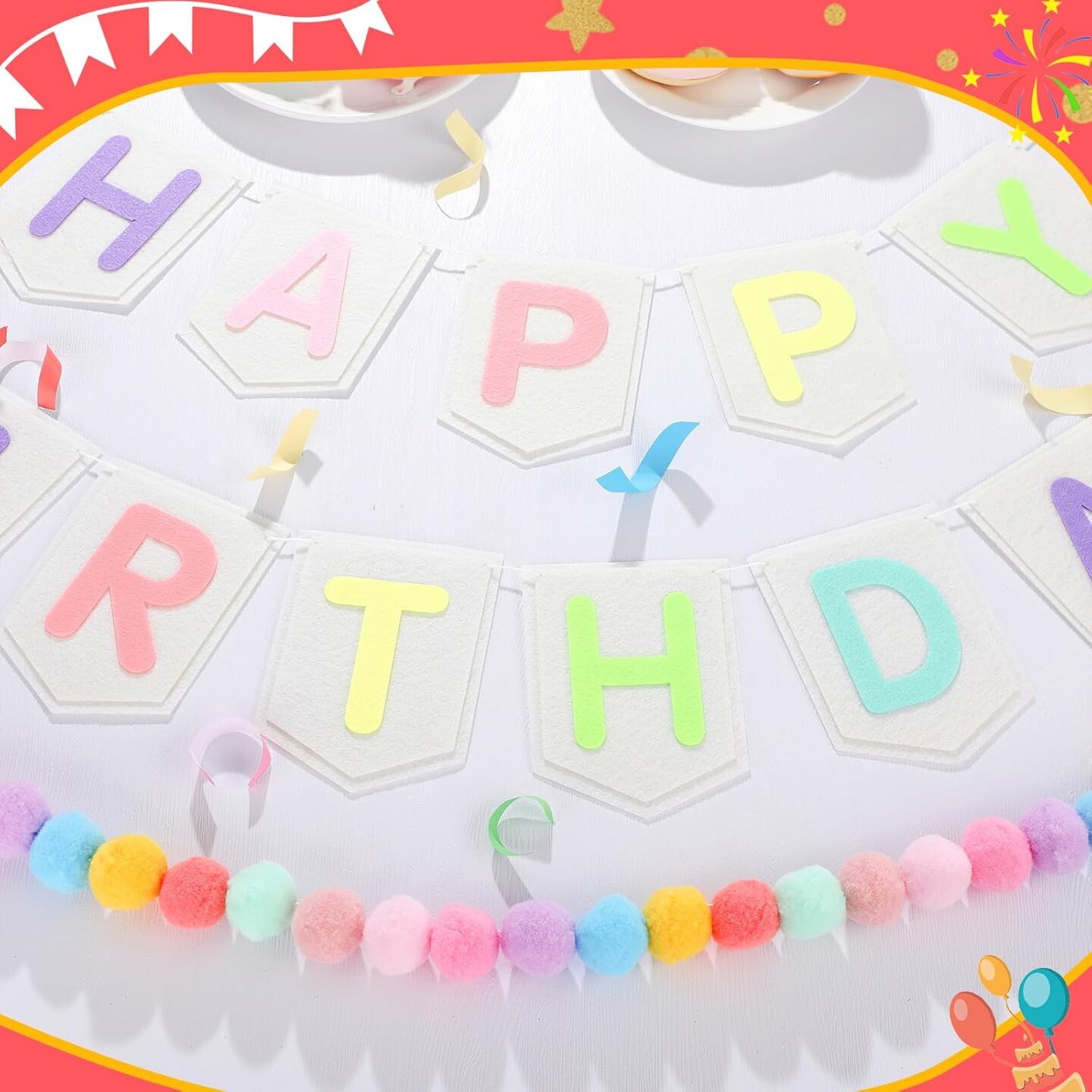 Felt Happy Birthday Banner Pastel Boho Happy Birthday Garland Pom Pom Rainbow Birthday Banner Reusable Birthday Sign Decoration Colorful Festive Cute Birthday Party Supply