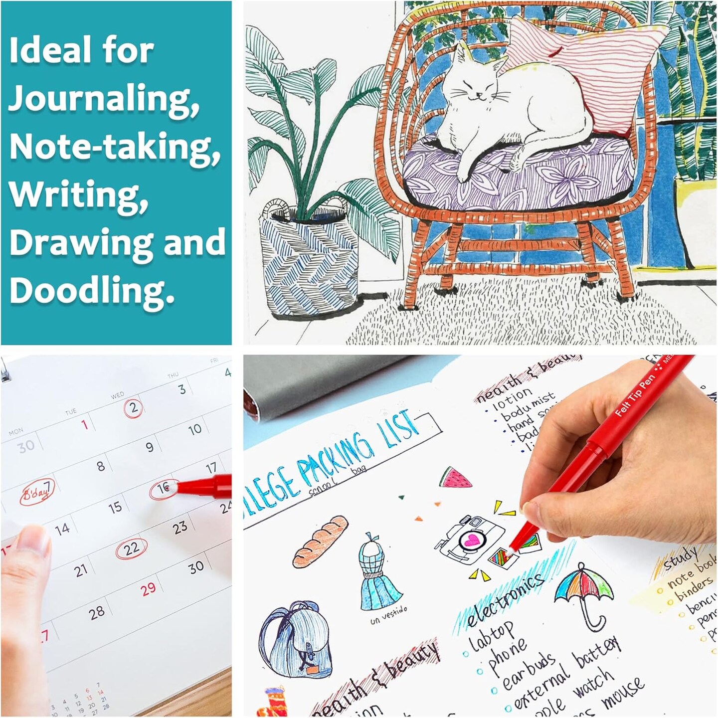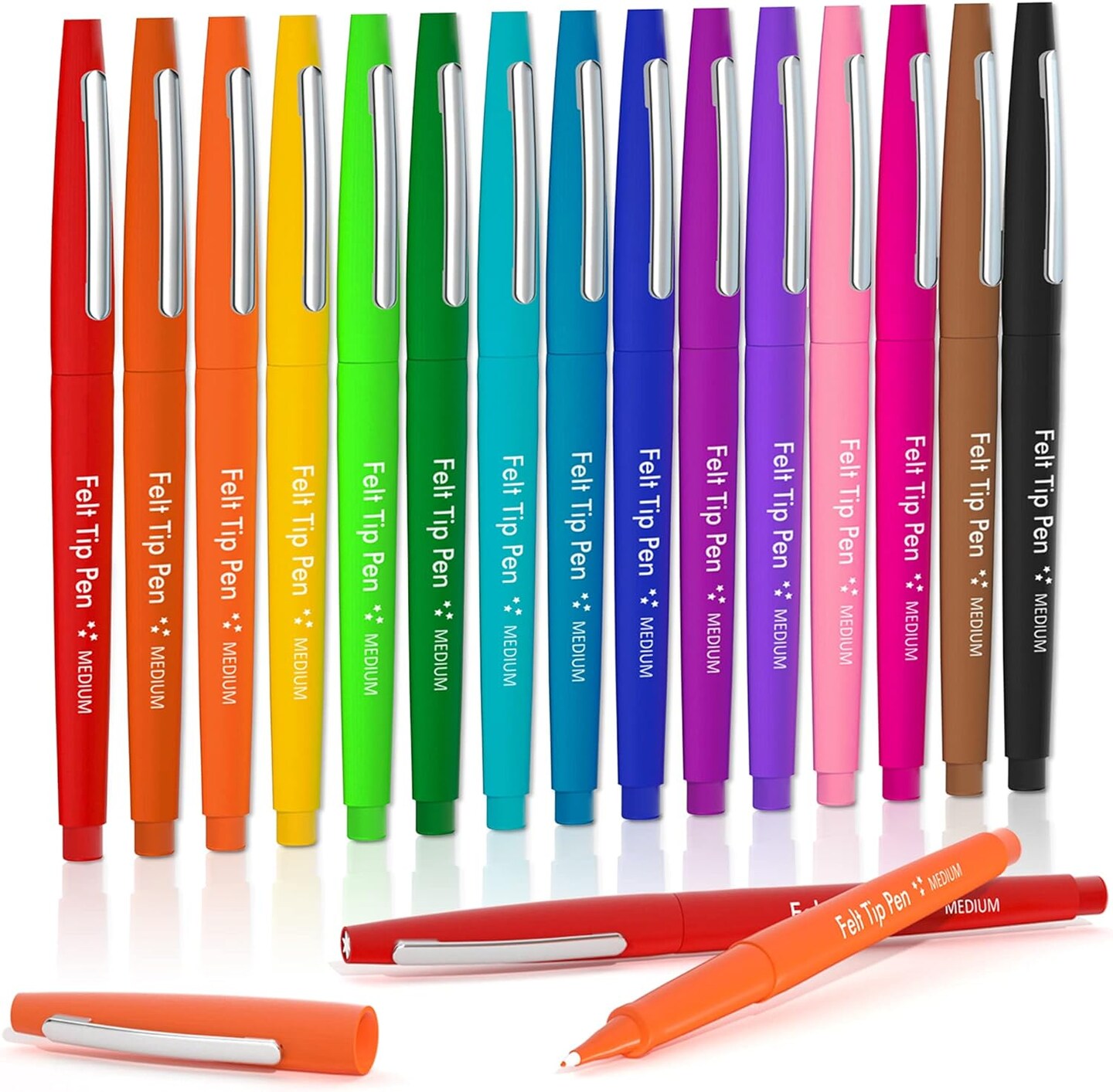 Felt Tip Pens, 15 Colors, 0.7mm Medium Point, Felt Tip Markers Pens for Journaling, Writing, Note Taking, Planner, Perfect for Art Office and School Supplies