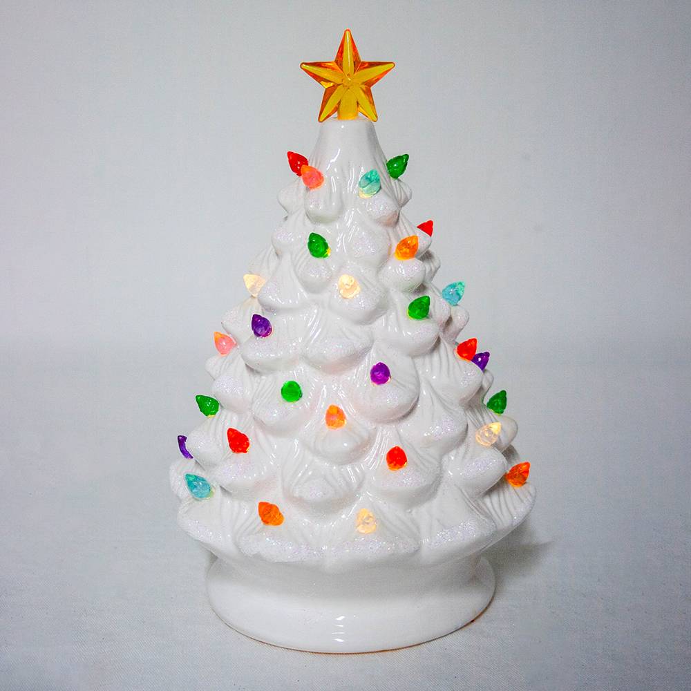 Festive Musical White Ceramic Christmas Tree Colorful Lights Battery Operated