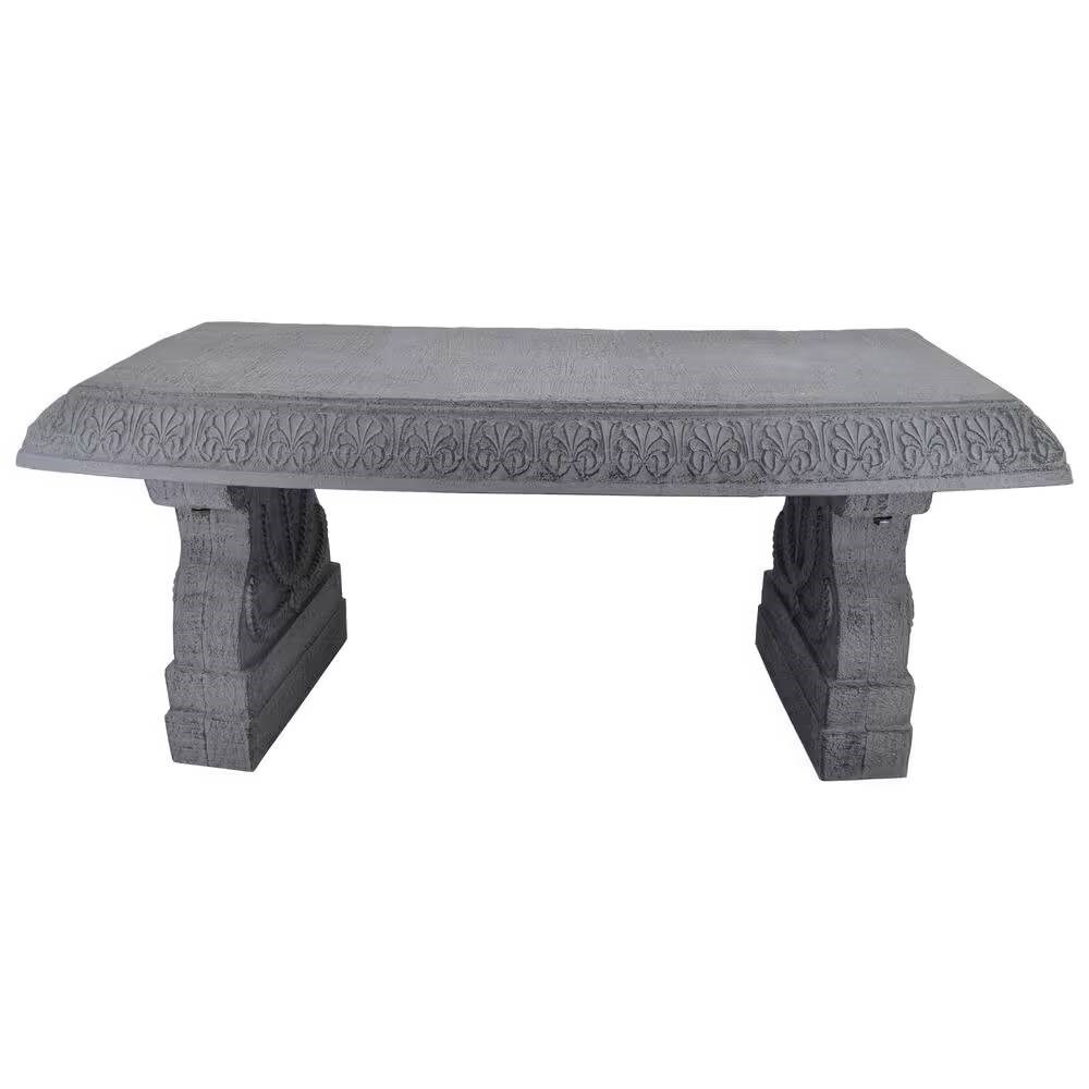 Fiber Clay Resin Outdoor Bench with Flower Engraved Design Perfect for Deck or Patio Garden