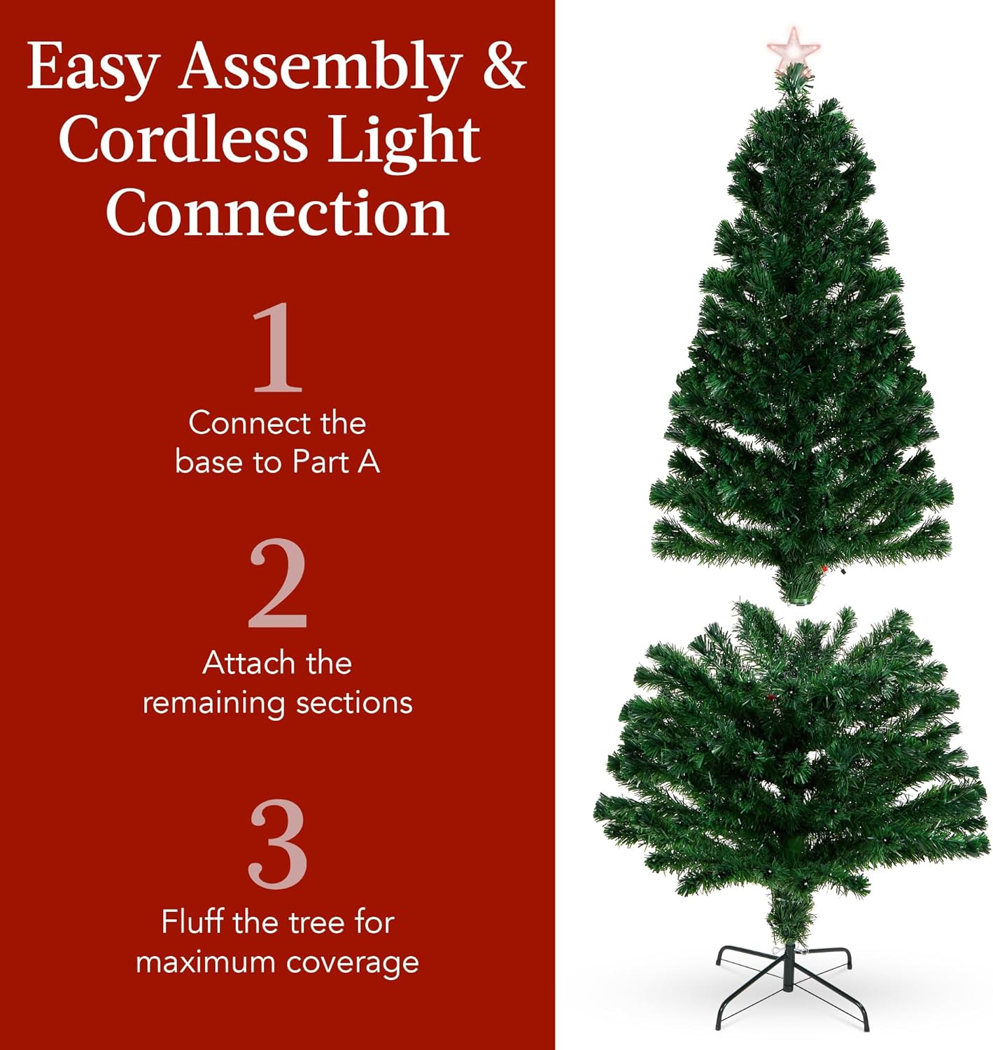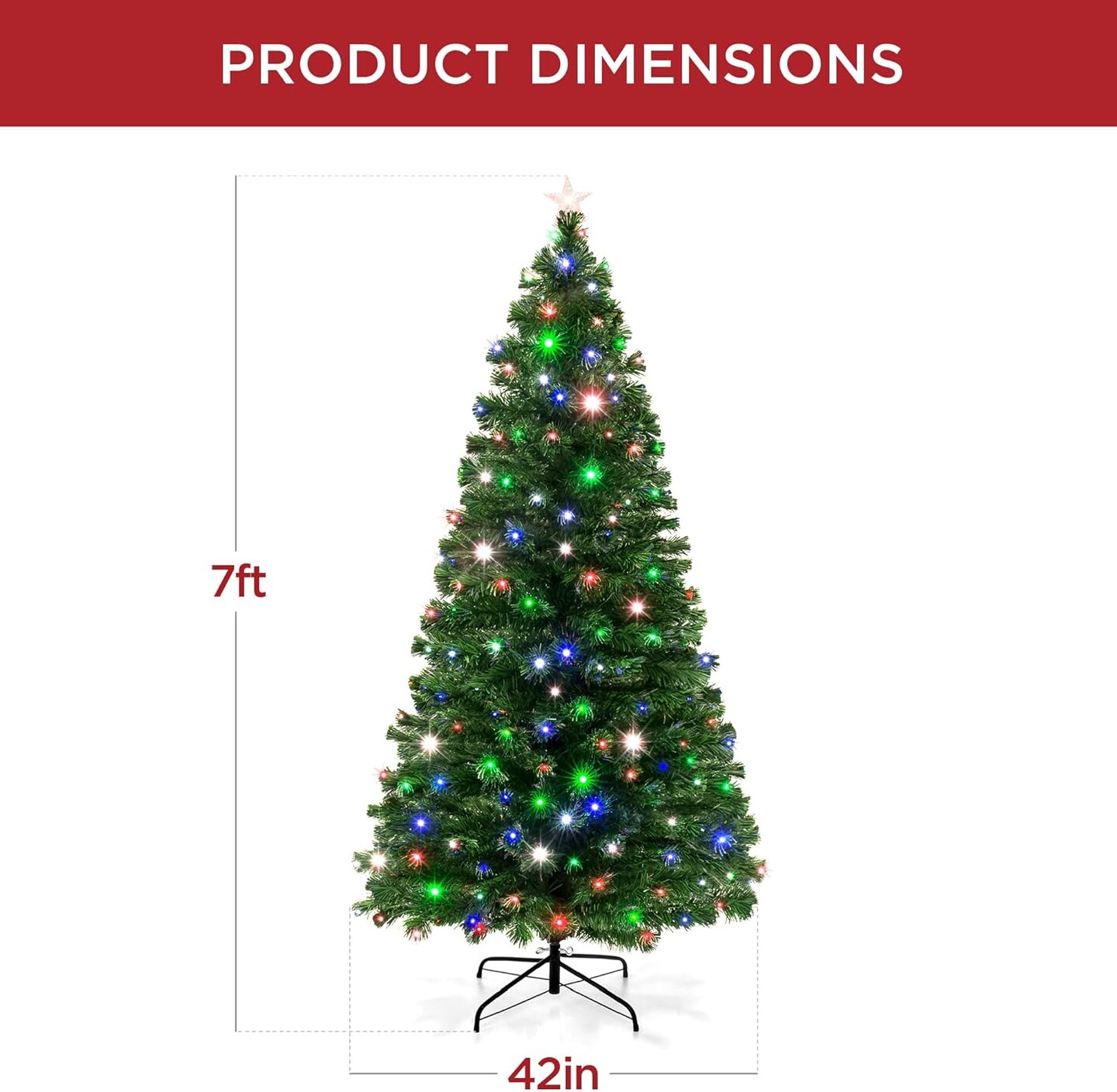 Fiber Optic Christmas Tree Multicolor LED Lights, 8 Light Sequences & Foldable Stand