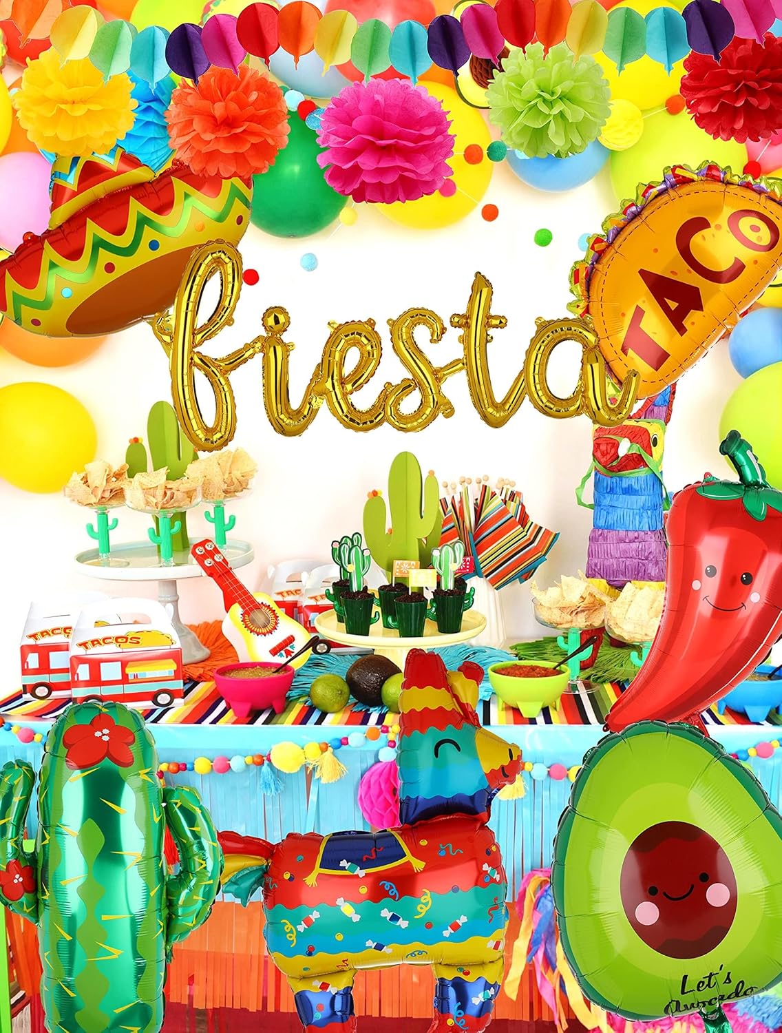 Fiesta Balloons Letter Banner Mexico Taco Llama Cactus Avocado Chili Pepper Mylar Balloon Birthday Mexican Fiesta Theme Cinco De Mayo Party Decor 13 Pcs Set