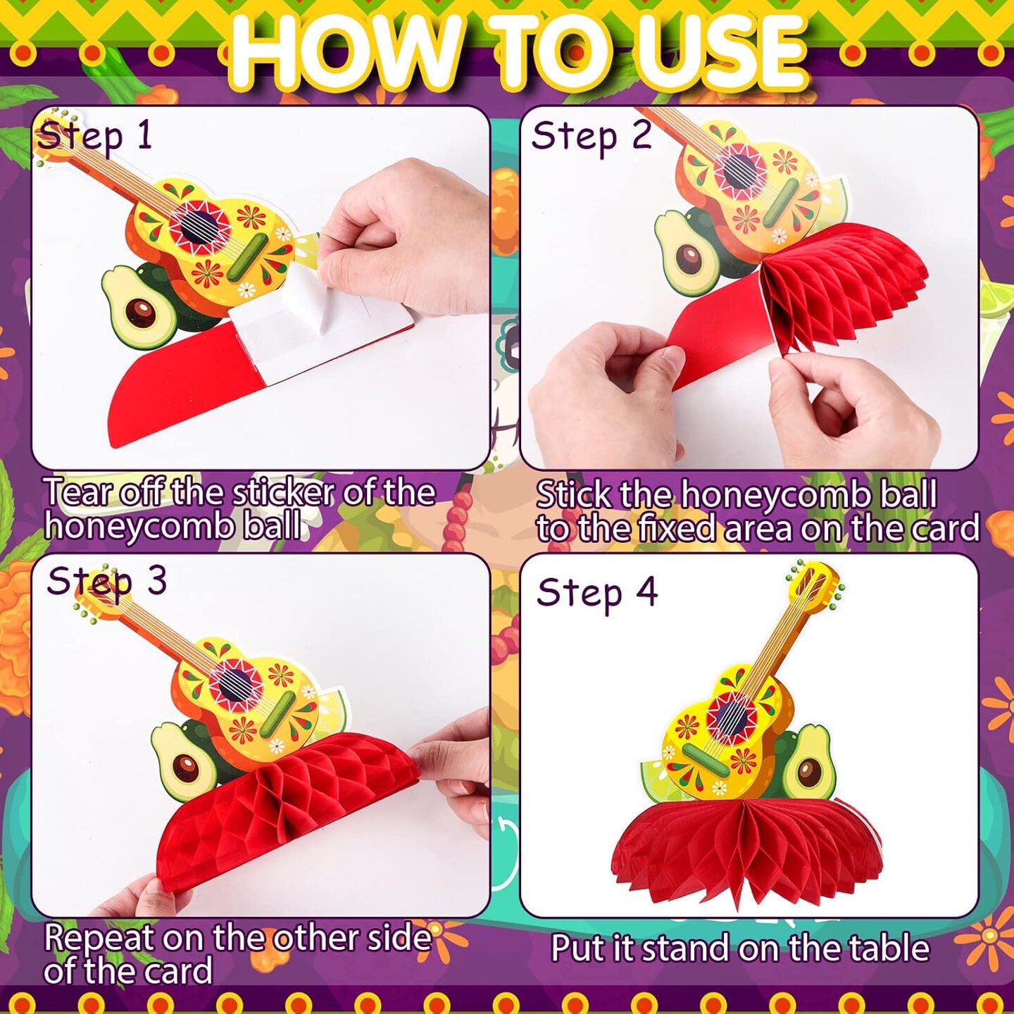 Fiesta Mexican Party Table Decoration Centerpiece Paper Cinco De Mayo Fiesta Table Topper Decor for Honeycomb Carnivals Taco Cactus Day of the Dead Decor Supplies(Vivid)
