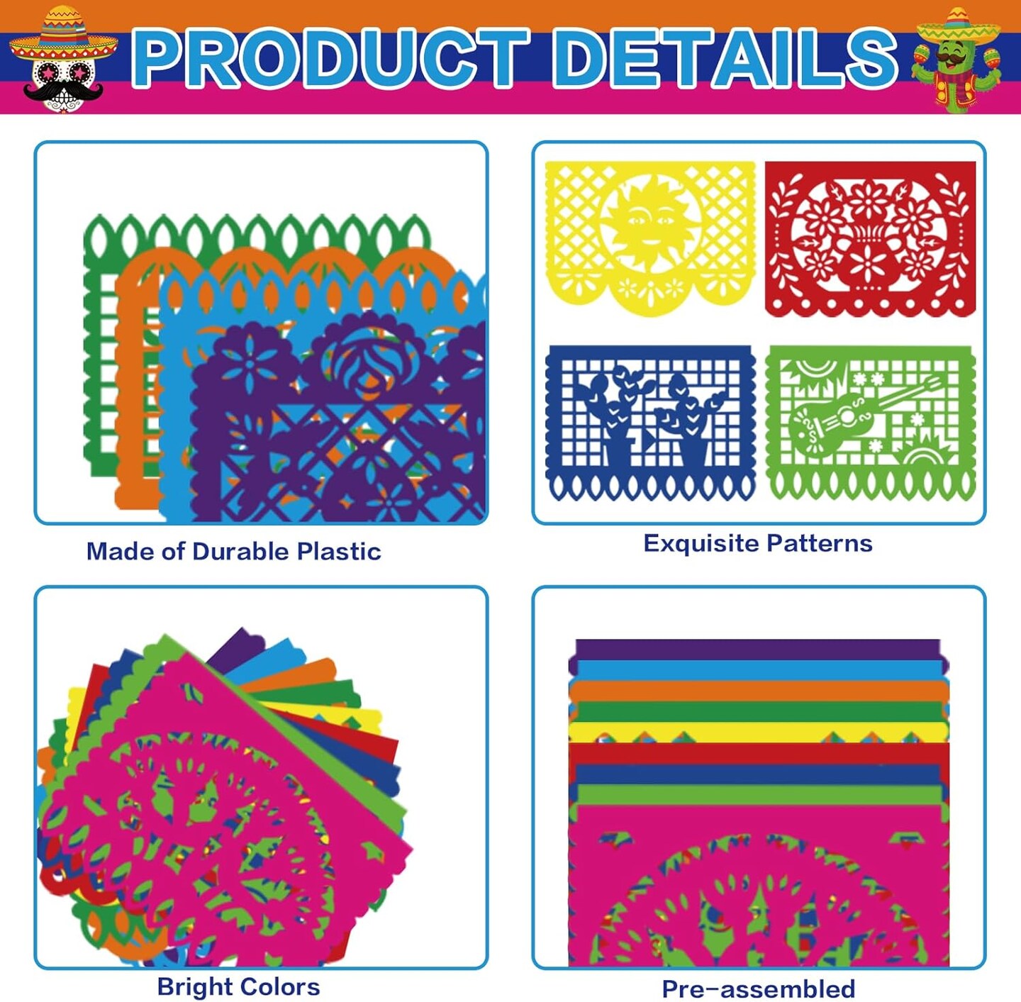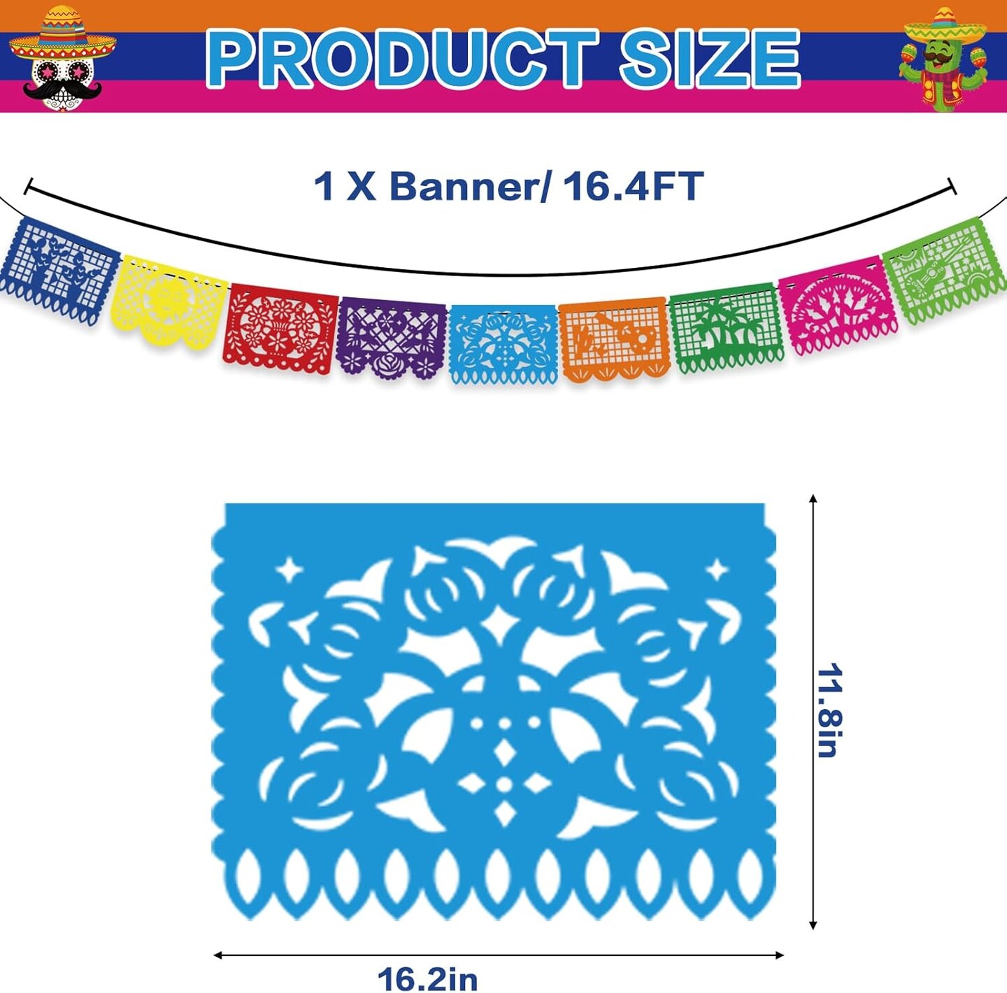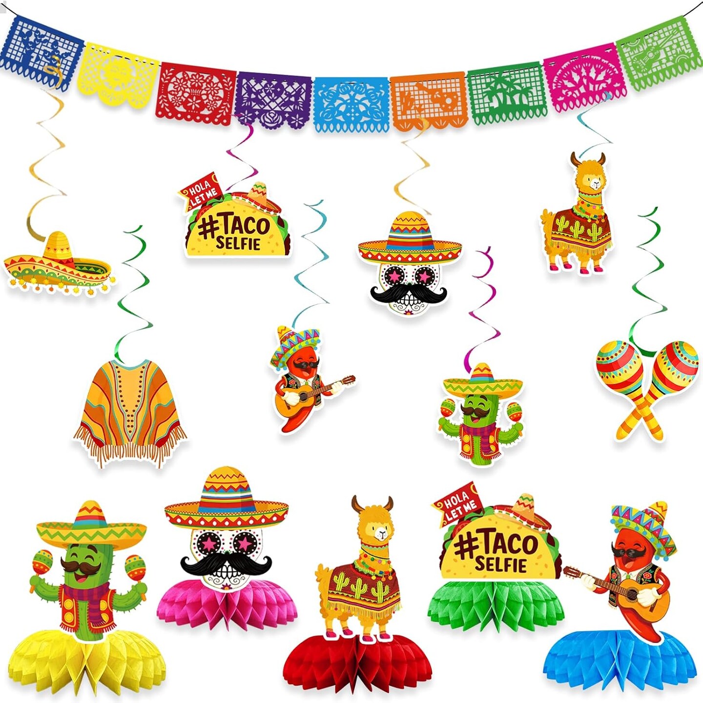 Fiesta Party Decorations Set – Plastic Papel Picado Banner, Hanging Swirls & Honeycomb Centerpieces – Cinco de Mayo Mexican Theme Party Supplies for Taco Party, Birthday & Day of the Dead Decor – Perfect for Mother's Day Card Making Displays