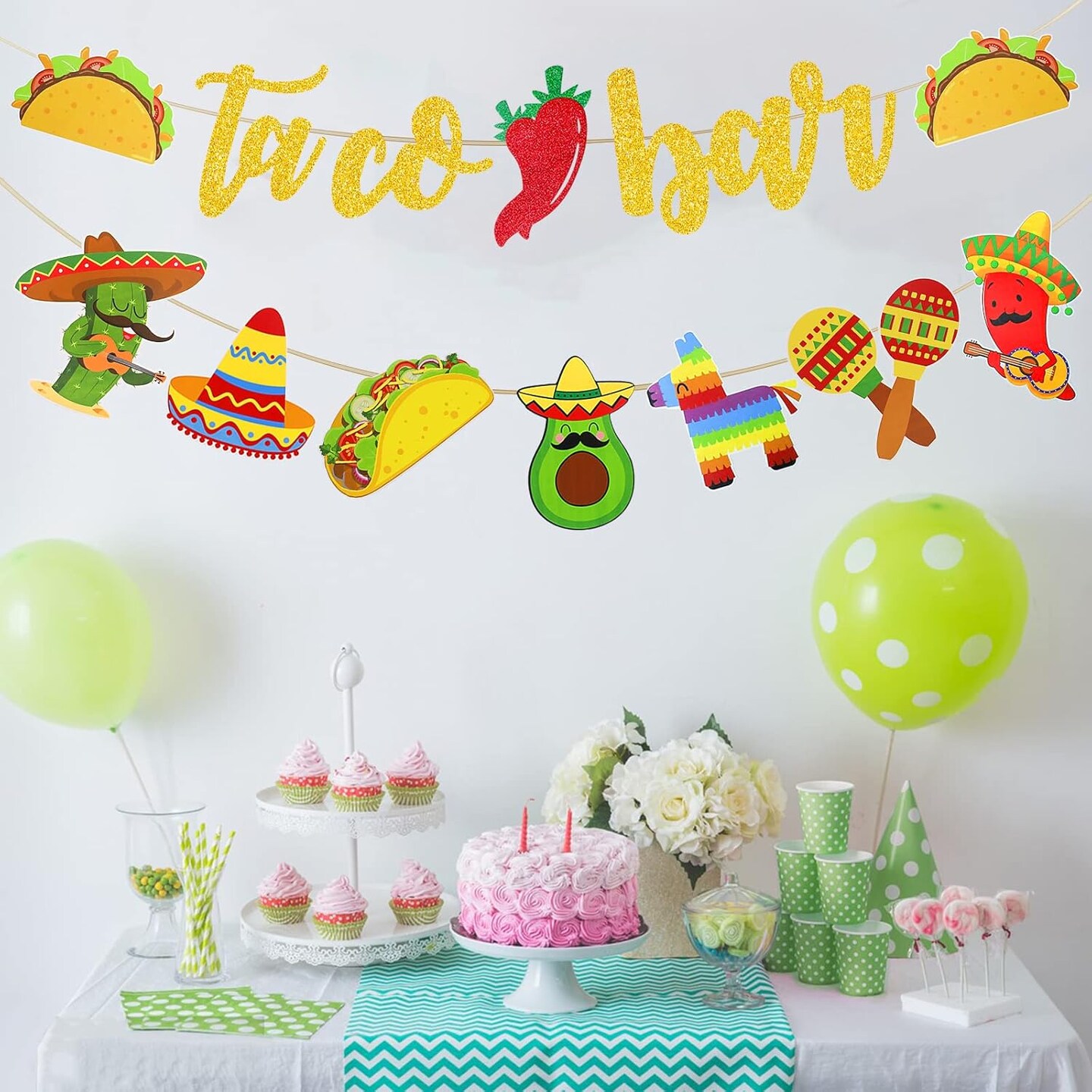 Fiesta Taco Bar Banner Garland 2 set Mexican Fiesta Party Banner with Cactus Donkey Maraca Sombrero Taco Pepper for Mexican Cinco de Mayo Fiesta Theme Party Decorations