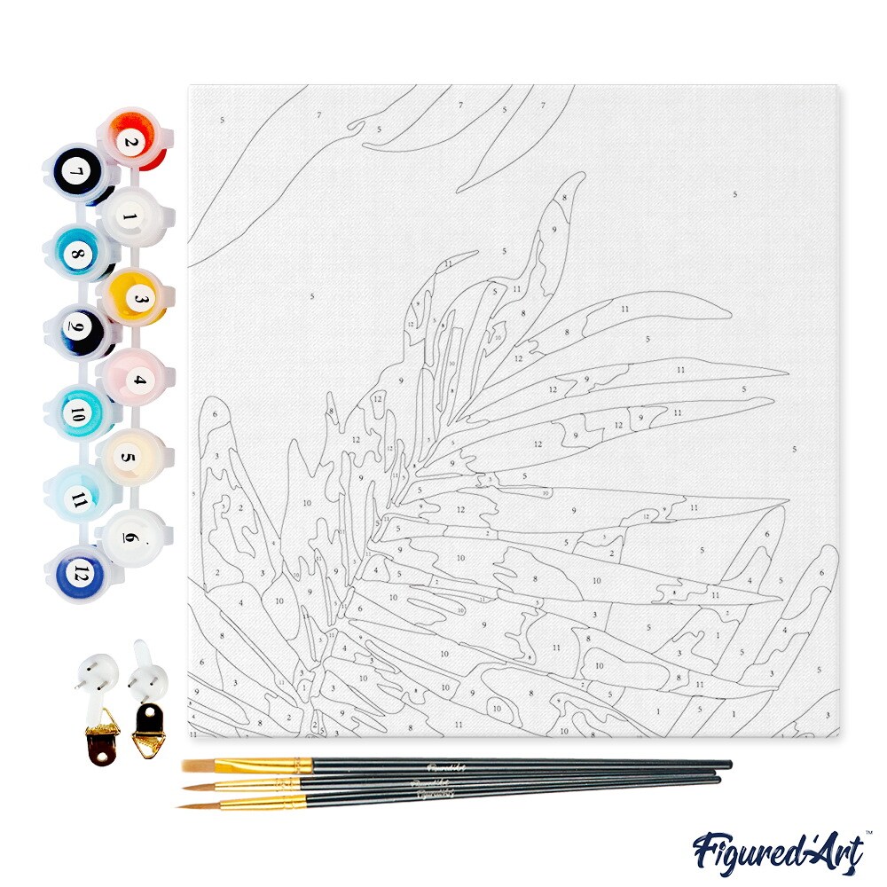 Figured'Art Mini Paint by Numbers Kit for Adults with Frame Abstact Palm Leaves Small format 8"x8" - Craft Art Painting DIY Canvas Already Stretched on a Wooden Frame