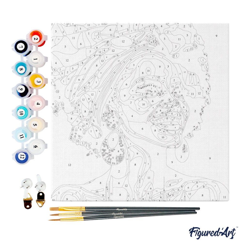 Figured'Art Mini Paint by Numbers Kit for Adults with Frame African Queen Pop Art Small format 8"x8" - Craft Art Painting DIY Canvas Already Stretched on a Wooden Frame